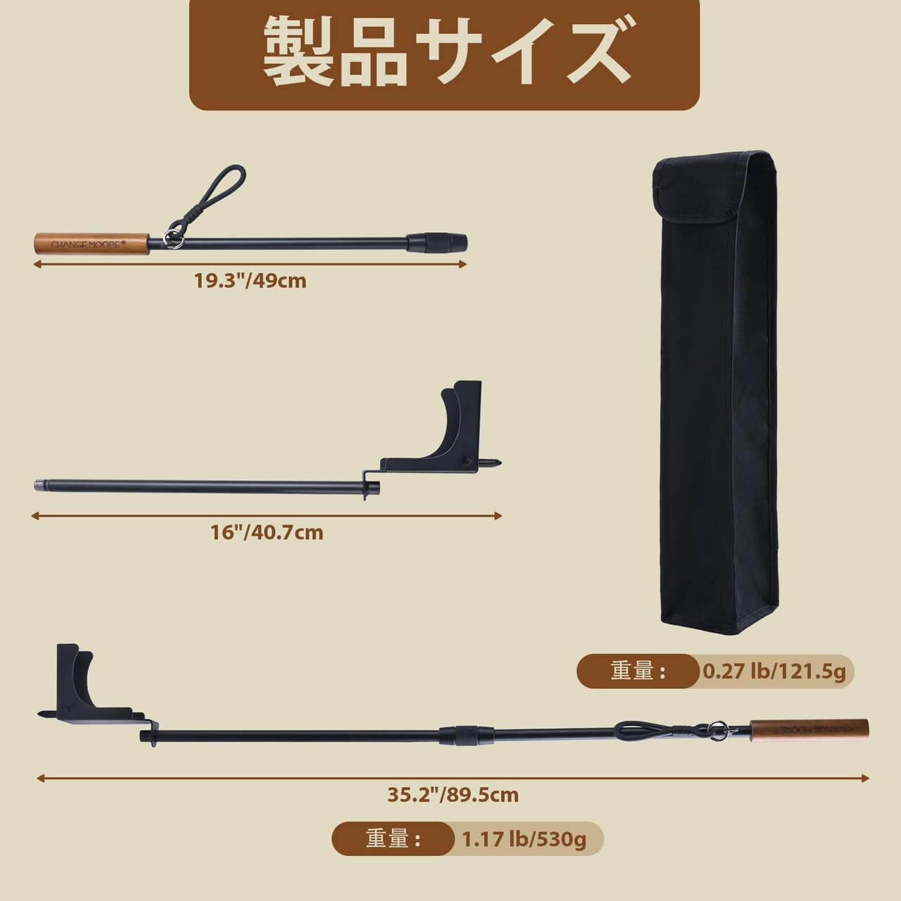 【軽量·持ち運びやすい】2節脱着式デザインを採用し、収納袋への収容が容易。組み立ては極めてシンプルで、2つのパーツを嵌合後にネジを締めるだけで数秒で完了します。さらに、製品にはゴムバンドが付属しており、使用しない際は様々な場所に吊り下げて保管可能です。