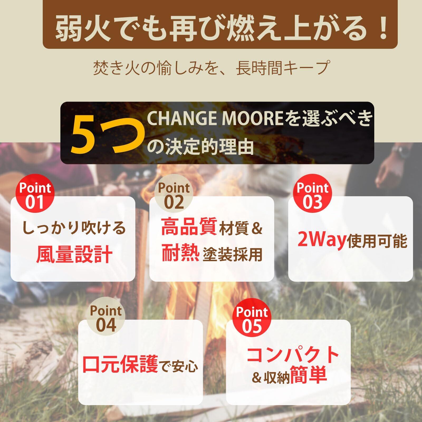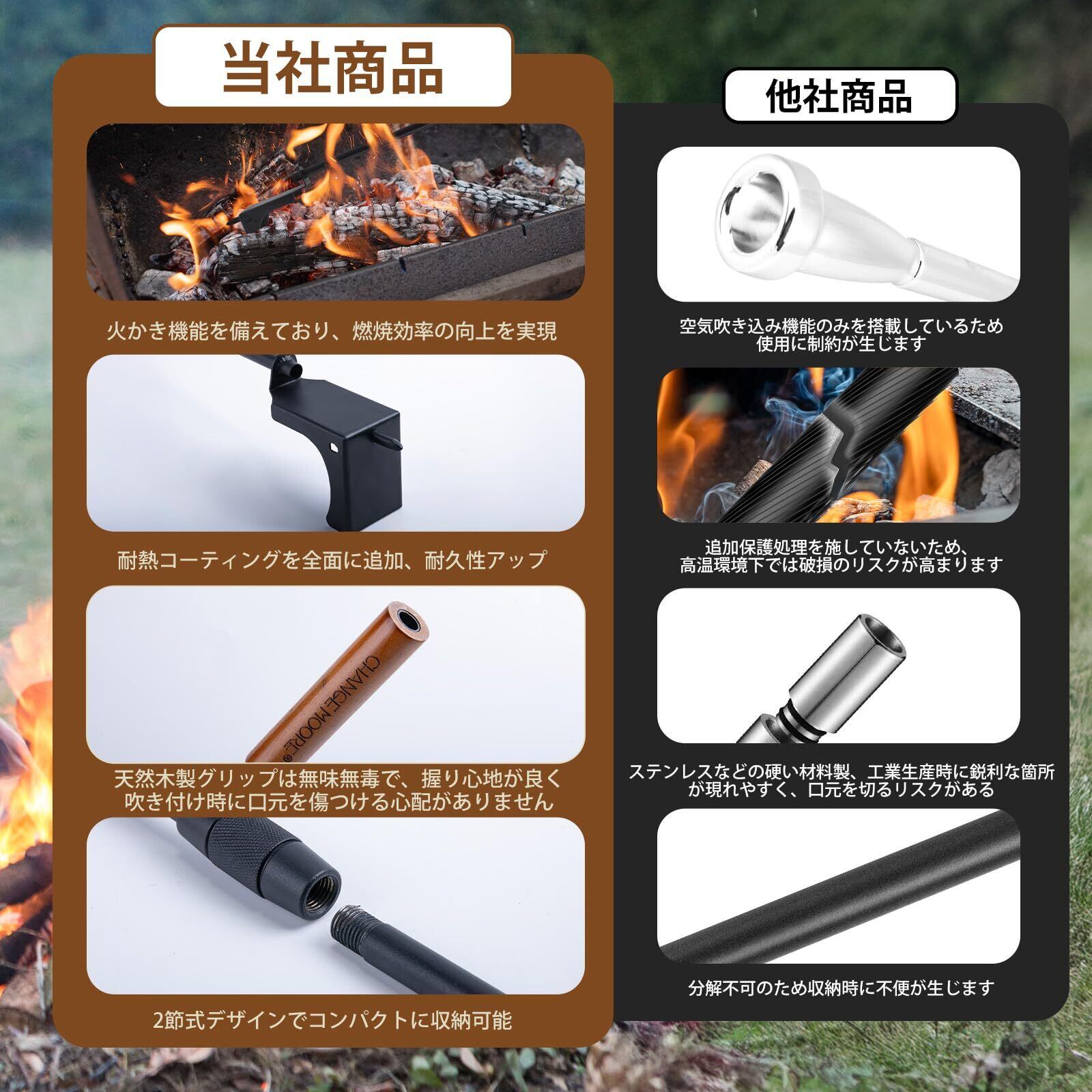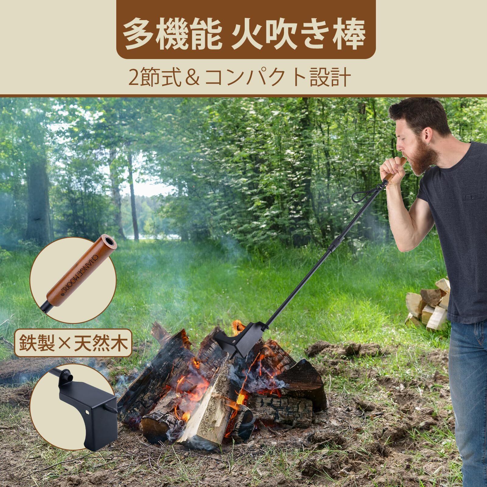 【新着商品】CHANGE MOORE 火吹き棒 多機能火吹き棒 火掻き棒 火起こし【鉄製&耐熱塗装 天然木グリップ】 取り外し可能 コンパクト 収納袋付き アウトドア キャンプ 焚き火 バーベキュー