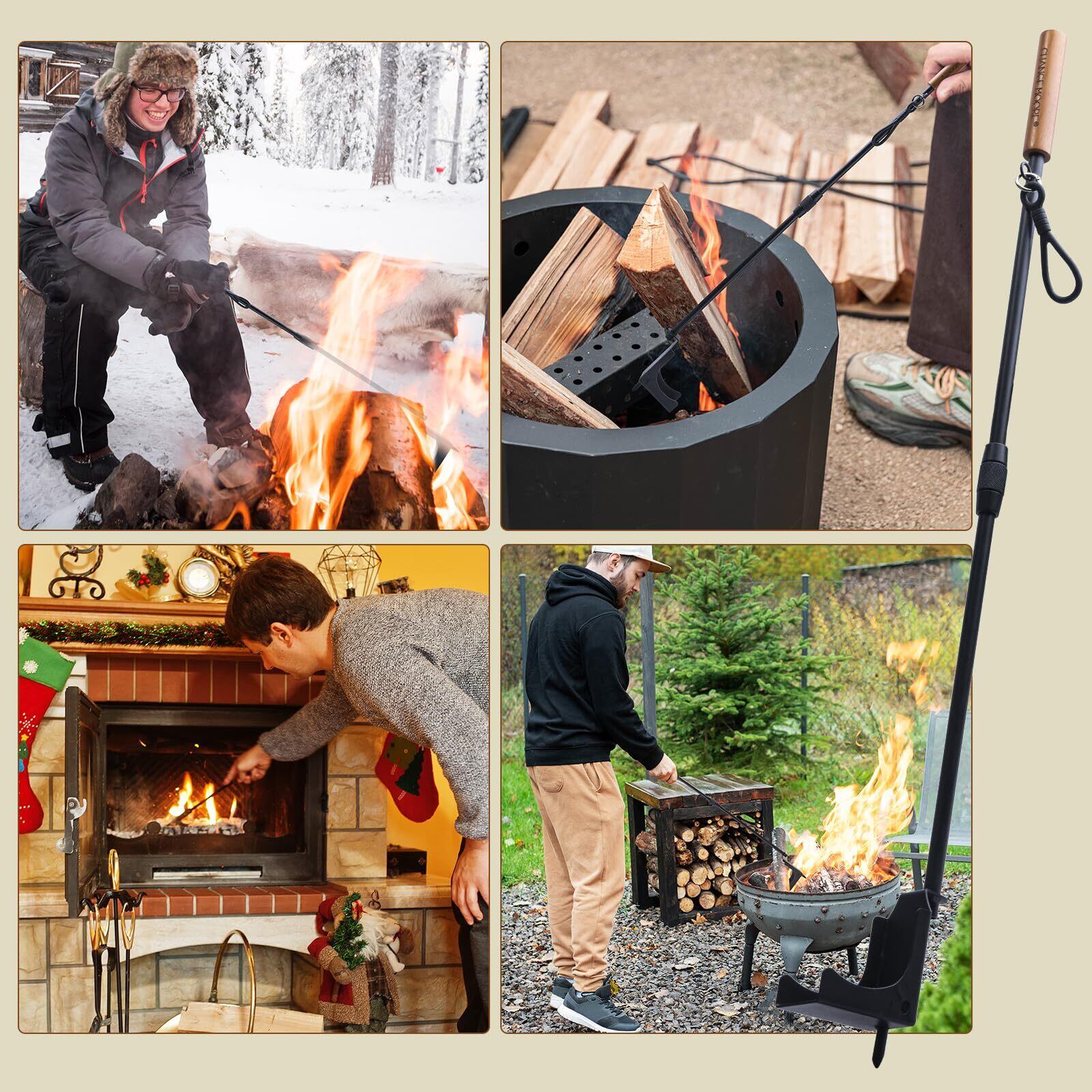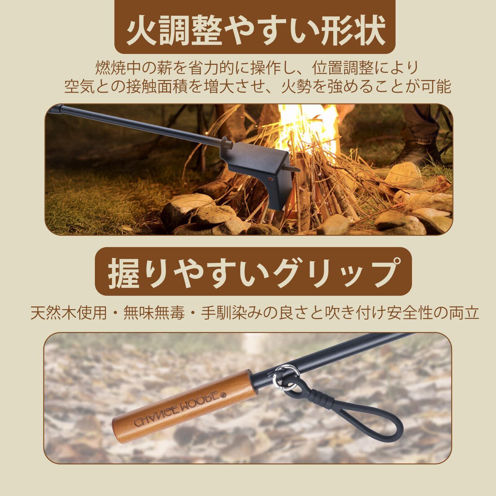 CHANGE MOORE 火吹き棒 多機能火吹き棒 火掻き棒 火起こし【鉄製&耐熱塗装 天然木グリップ】 取り外し可能 コンパクト 収納袋付き アウトドア キャンプ 焚き火 バーベキュー