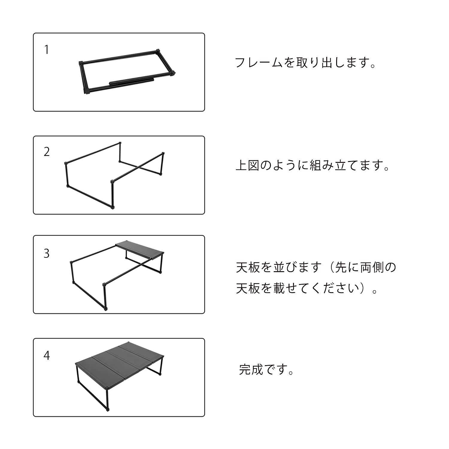 【簡単に組み立て】天板をフレームに載せるだけで組み立て、ほかのテーブルより十分な大きさも、キャンプをさらなる快適さにします。