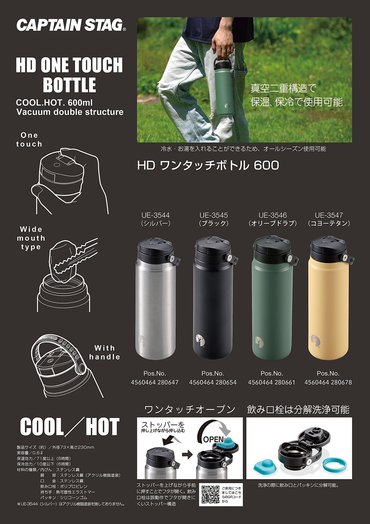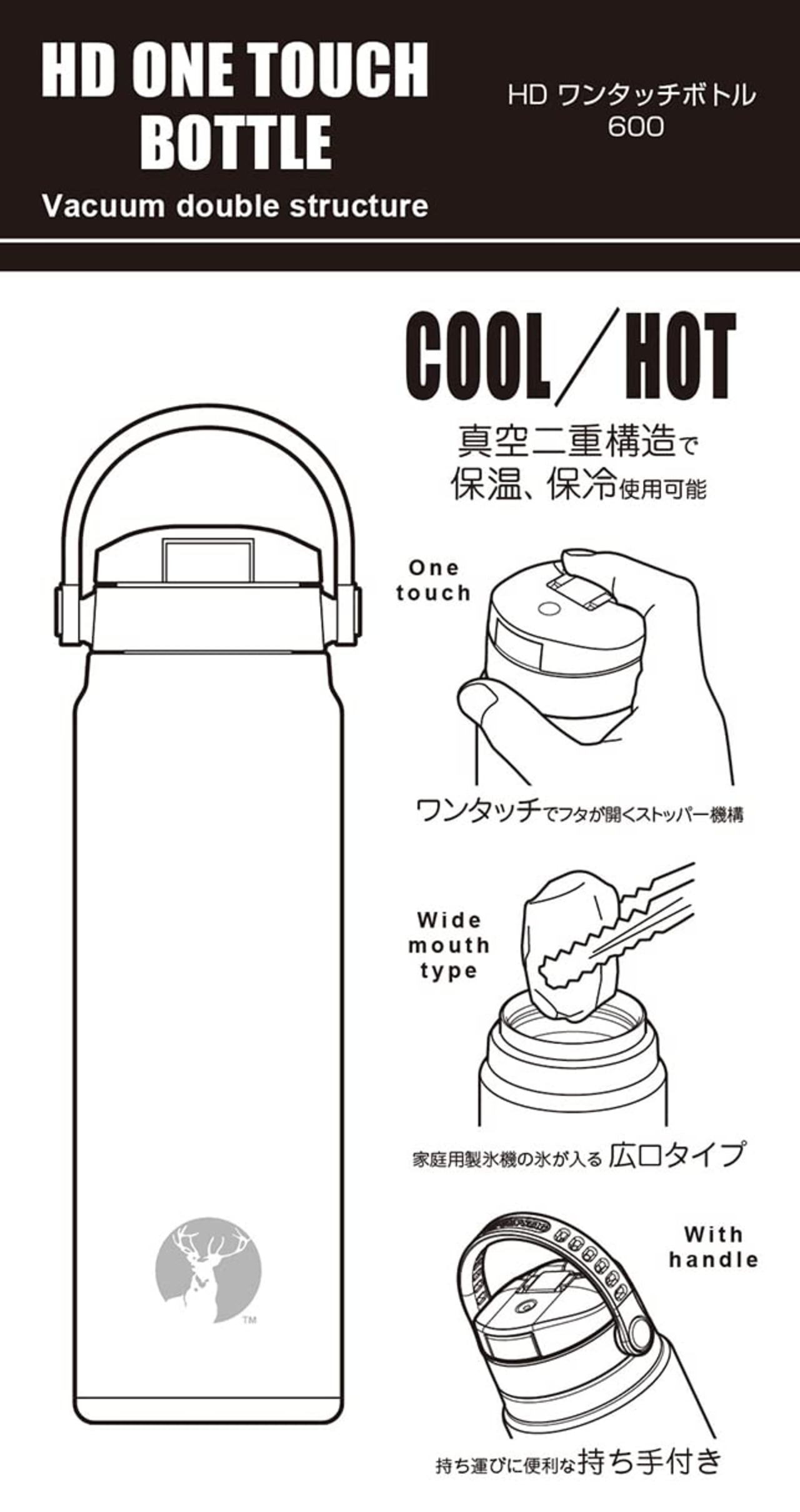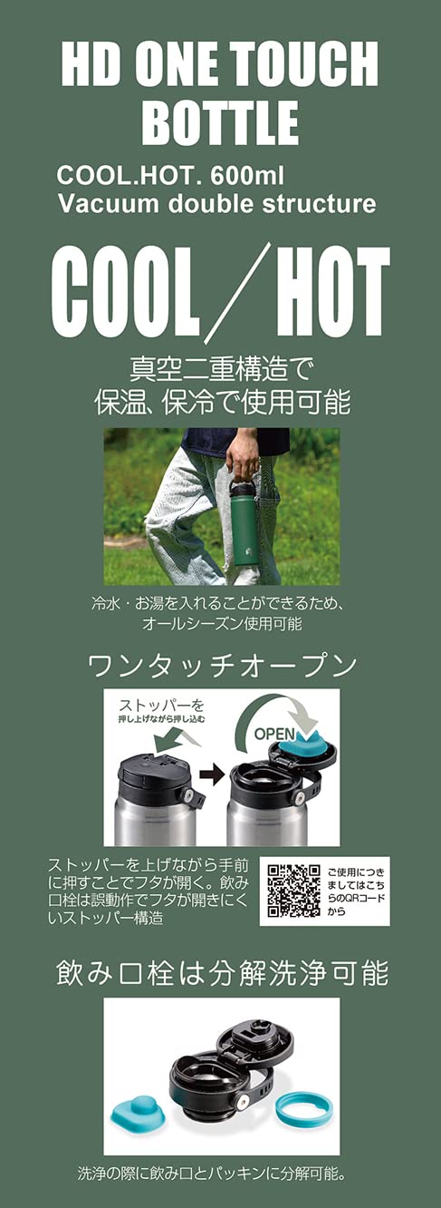 【在庫セール】キャプテンスタッグ(CAPTAIN STAG) スポーツボトル 水筒 直飲み ダブルステンレスボトル 真空断熱 保温 保冷 HDワンタッチボトル 【600ml/1000ml】