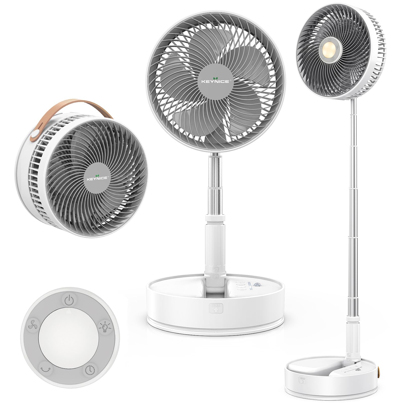 Keynice 扇風機 折り畳み 無段階伸縮式 リビング 首振り卓上扇風機 dcモーター USB充電式 コードレス タイマー付き 静音 リモコン付き 7200mAh電池 高さ自由調節 4段階風量調節 小型 コンパクトに収納 室内 アウトドアに適用 ホワイト KN-Q8Pro