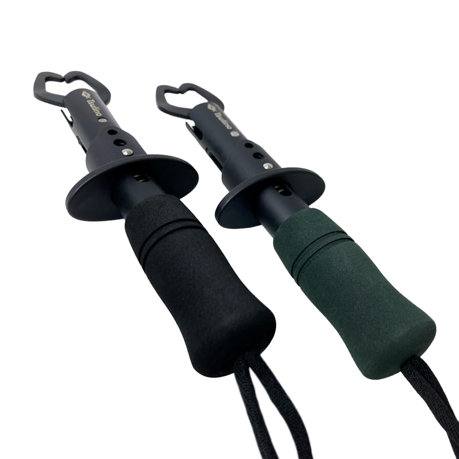 手に触れずに魚をガッチリつかむタフフィッシュグリップ。コンパクトで握りやすく、女性やお子様でも安心して使用できます。本体は錆びにくいブラックフッ素塗装を採用。ハンドルは握りやすいEVA素材でブラックとカーキの2色から選べます。