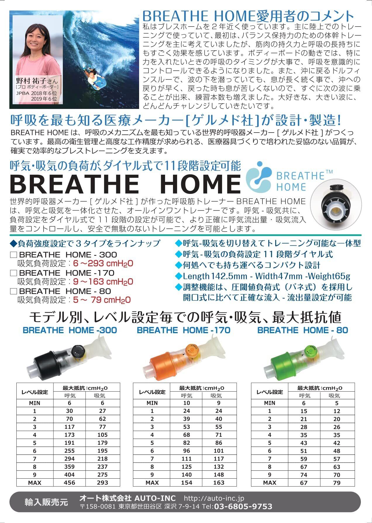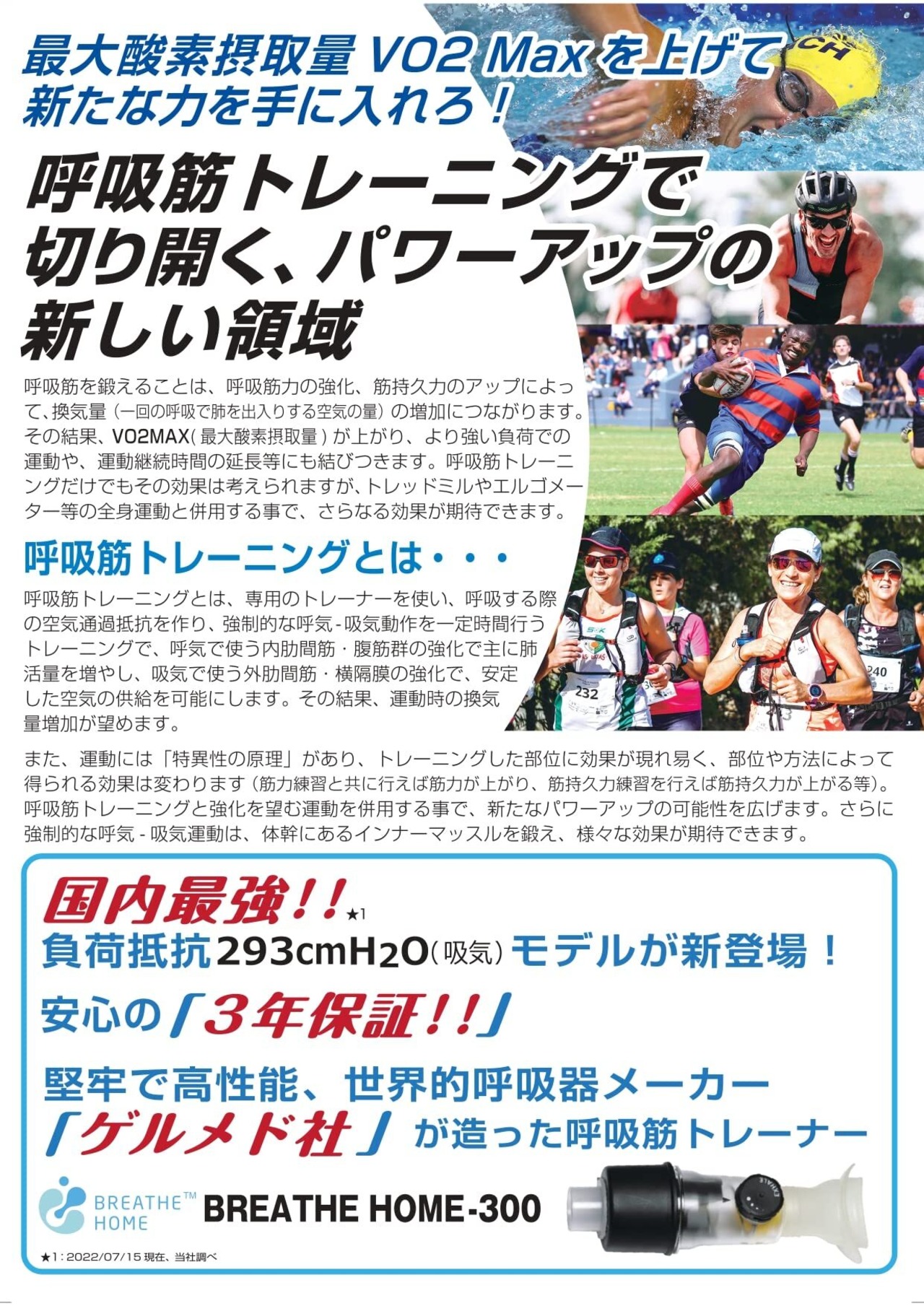 今までの呼吸筋トレーナーは吸気だけを鍛えるものでしたが、「ブレスホーム」は吸気・呼気両方を鍛えられる新しい呼吸筋トレーナーです。腹式呼吸から腹圧呼吸へ、息を吸う時、息を吐く時に腹圧をかけ続ける呼吸法で、心肺機能はもちろん身体を支える体幹(横隔膜、腹横筋、多裂筋、骨盤底筋)を身体の中から鍛えられます。アスリート、音楽(歌唱、吹奏楽)一般の方まで「ブレスホーム」は世界的呼吸器メーカーが設計・製造していますのでご安心してお使えいただけます。