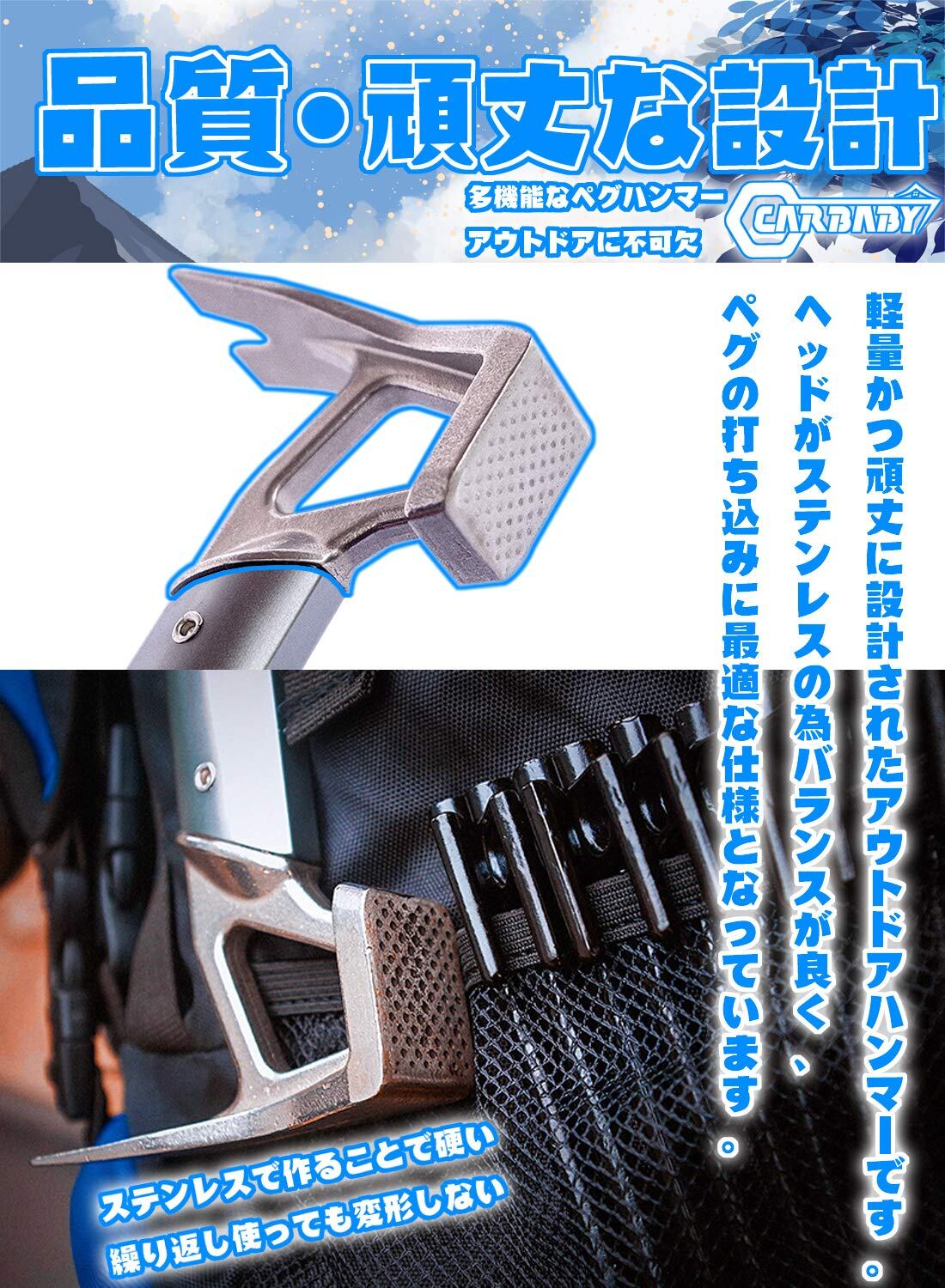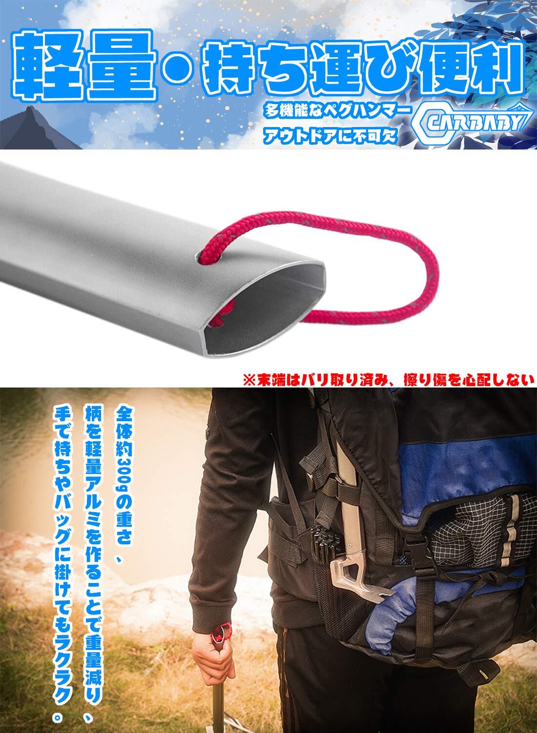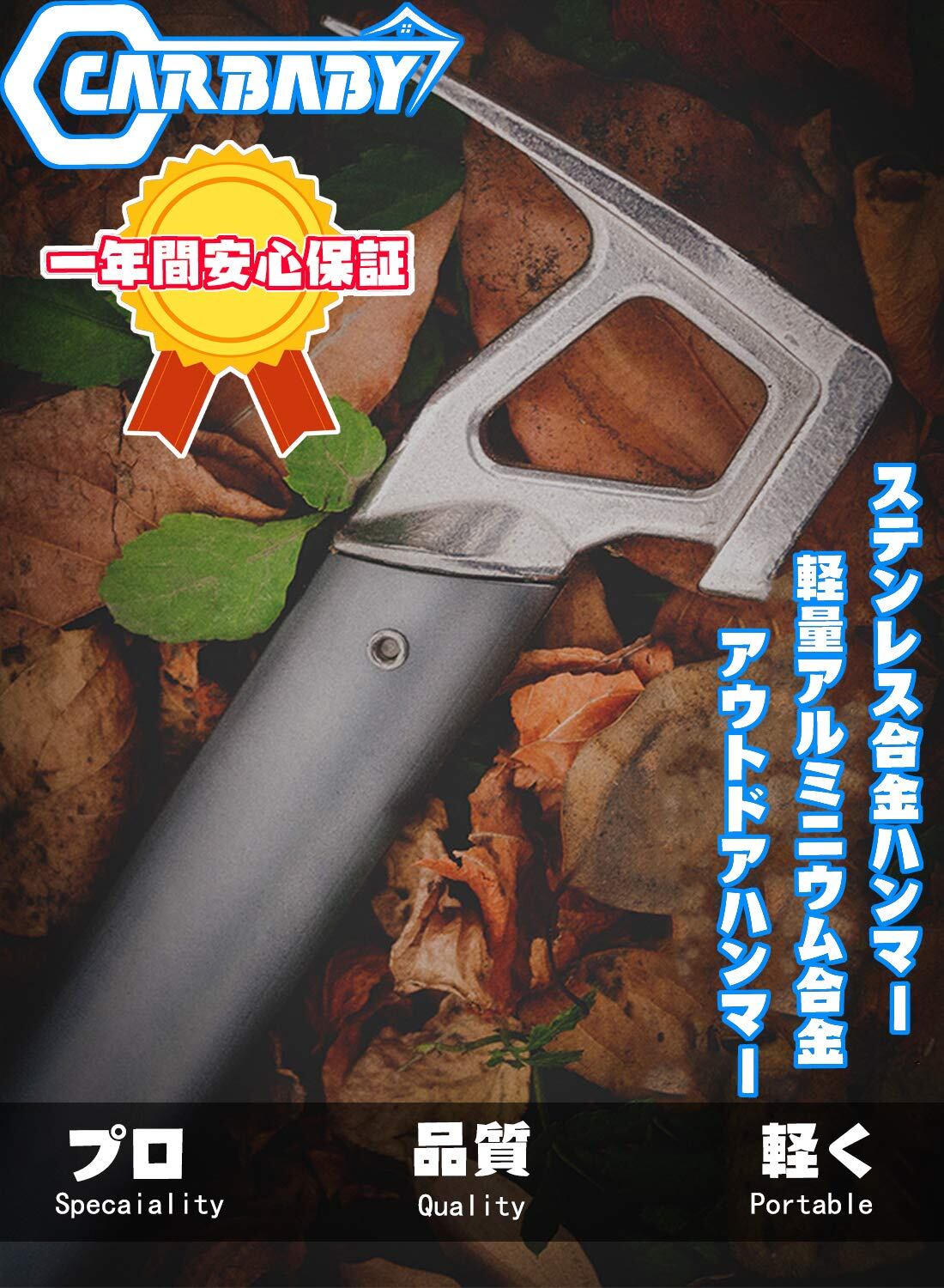 CARBABY ペグハンマー ステンレス製 ヘッド アルミニウム ハンドル キャンプ アウトドア ハンマーキャンプ アウトドア用 ペグ打ち/抜く 設営用具 安全 テント アウトドア 登山 キャンプ 野外 フェス 工事 多用 屋外キャンプ、ハイキング 軽量