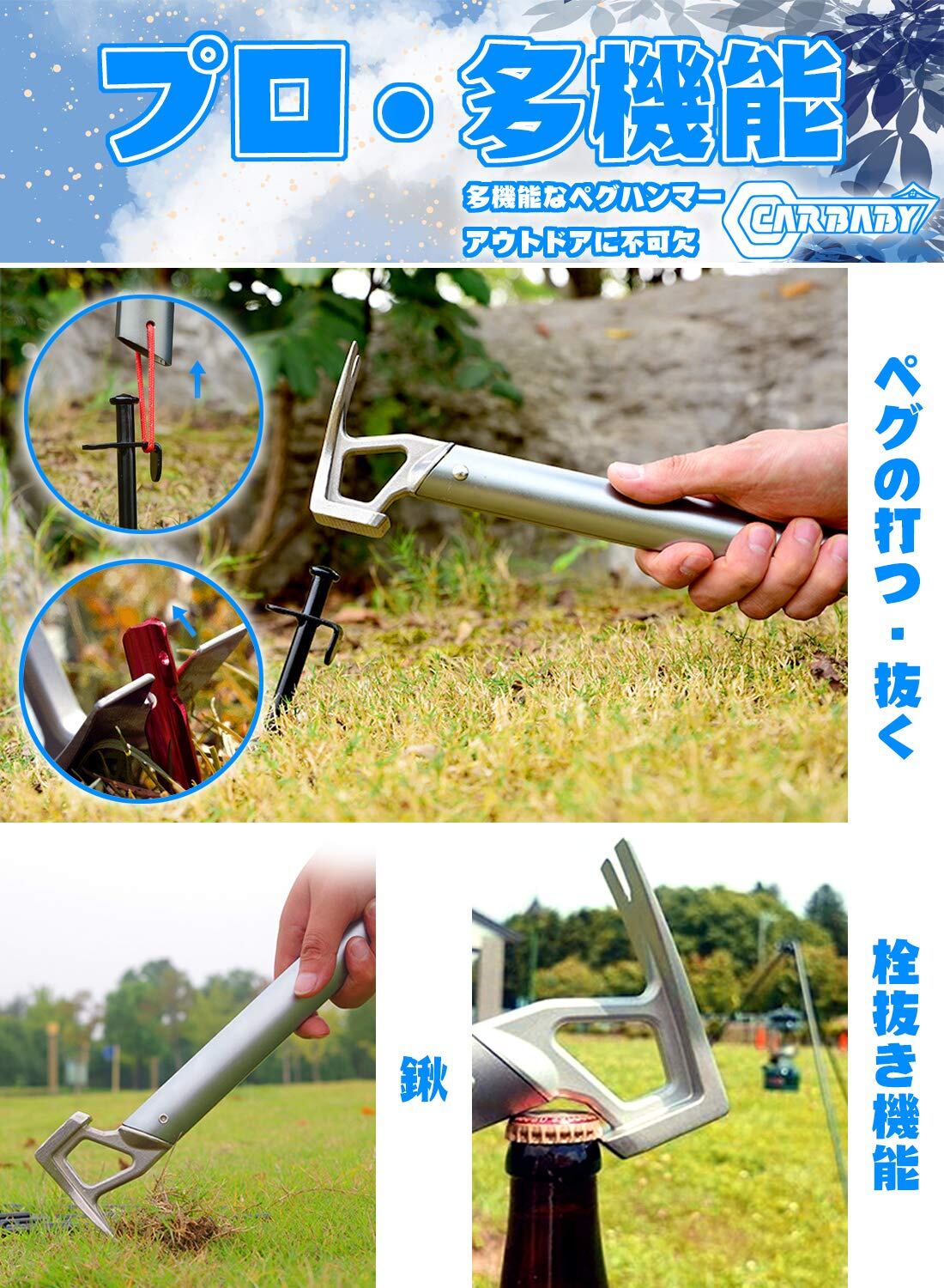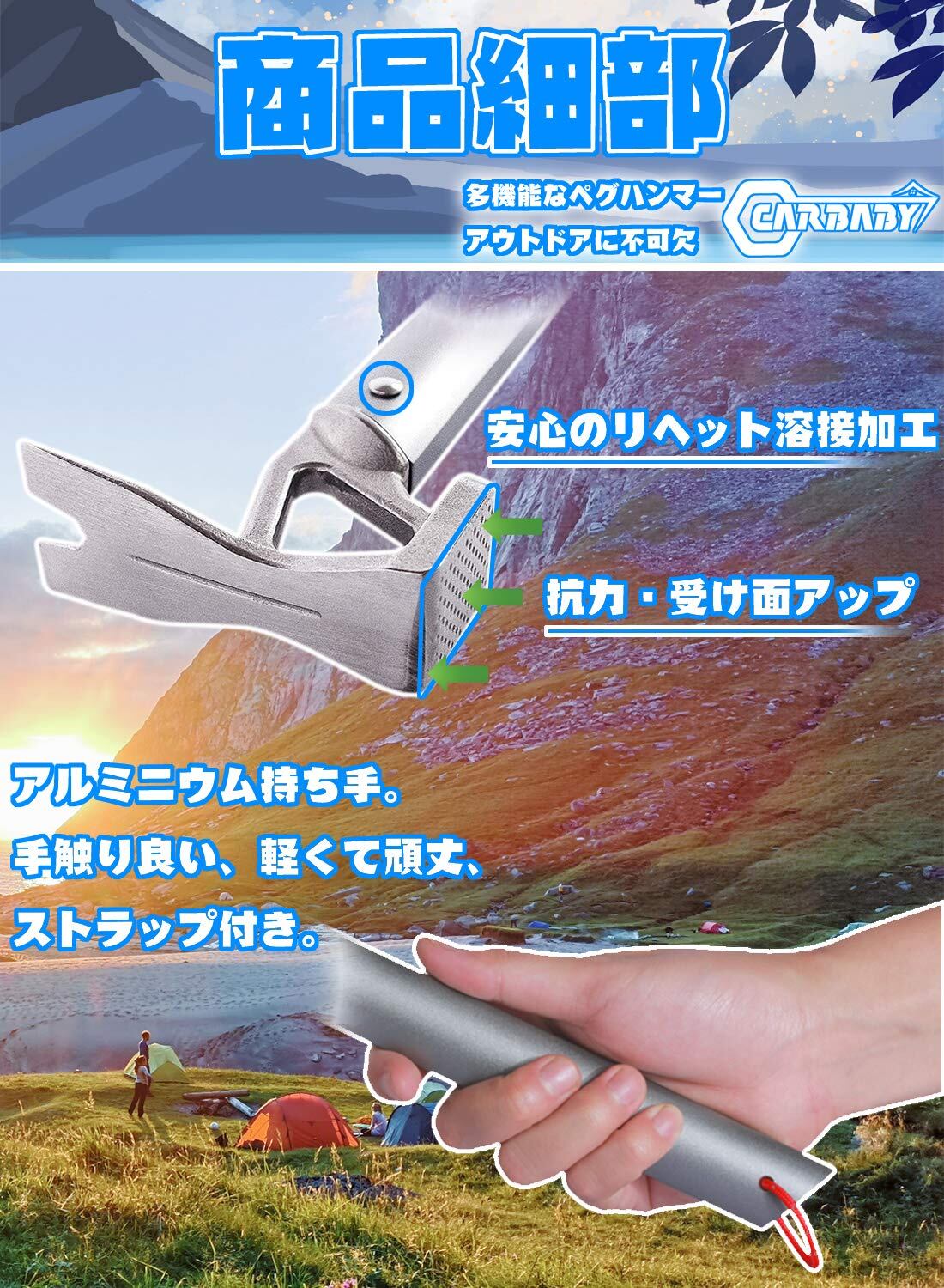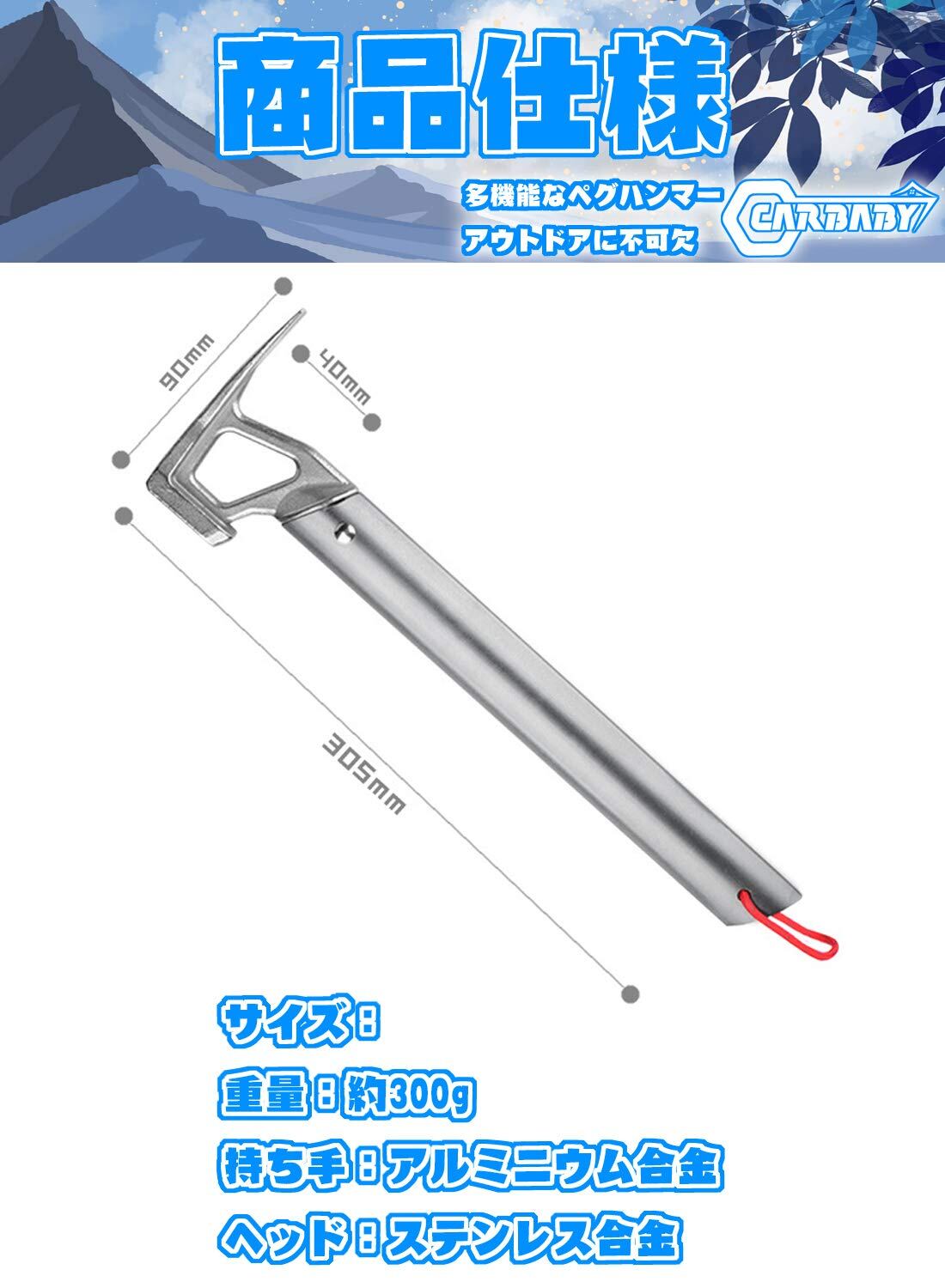 CARBABY ペグハンマー ステンレス製 ヘッド アルミニウム ハンドル キャンプ アウトドア ハンマーキャンプ アウトドア用 ペグ打ち/抜く 設営用具 安全 テント アウトドア 登山 キャンプ 野外 フェス 工事 多用 屋外キャンプ、ハイキング 軽量