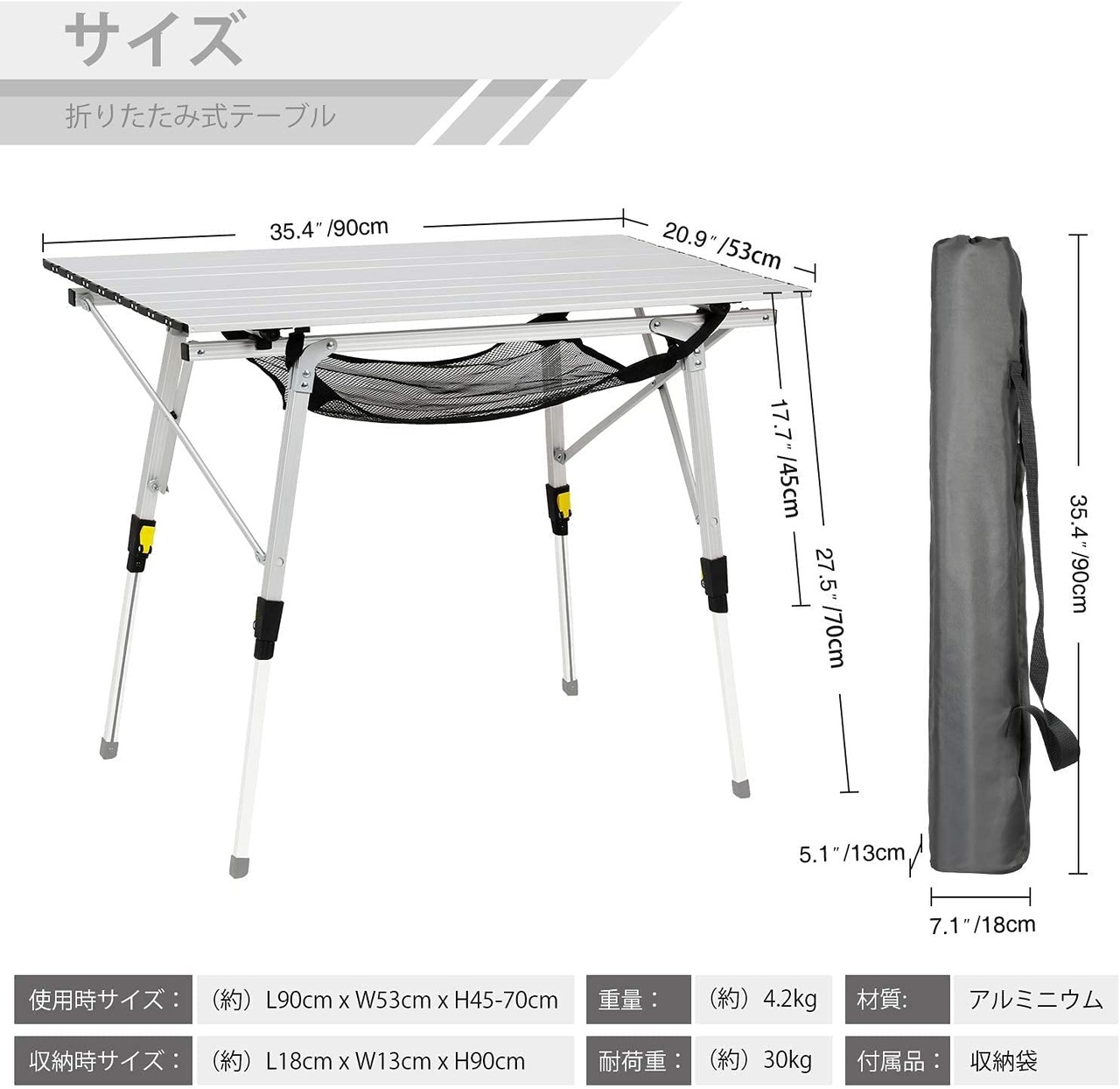 Timber Ridge アウトドアテーブル 折りたたみ 高さ調節 耐荷重30kg アルミ ロールテーブル 収納袋付き コンパクト キャンプ用 90L*53W*45-70Hcm 重量4.2kg