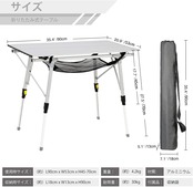●【アウトドアテーブルの詳細】①、素材:軽量でサビに強い航空アルミを使用! ②、自体重量:4.2KG;耐荷重:30KG。 ③、使用時サイズ:(約)長さ90cm*幅53cm*高さ45-70cm(四脚の高さも調節可能~); 収納時サイズ:(約)長さ90cm*幅18cm*高さ13cm。