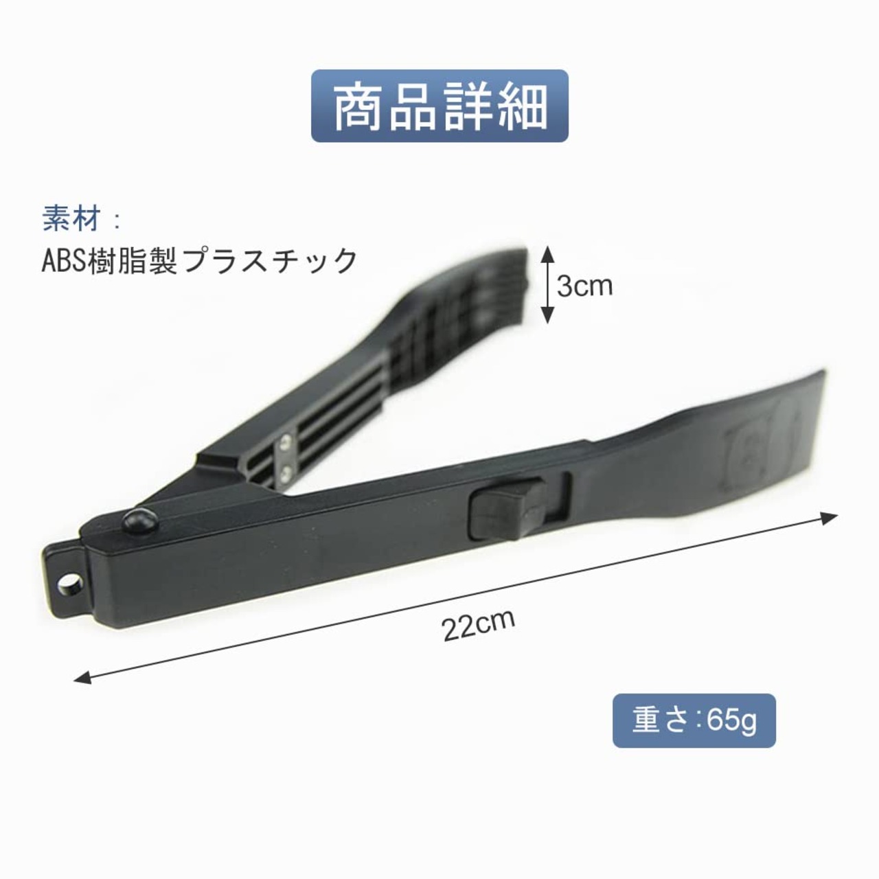 【商品詳細】素材:ABS樹脂製プラスチック,重さ:65g ,サイズ:1.9cm*3cm*22cm,カラー:ブラック。(カラビナ付き)