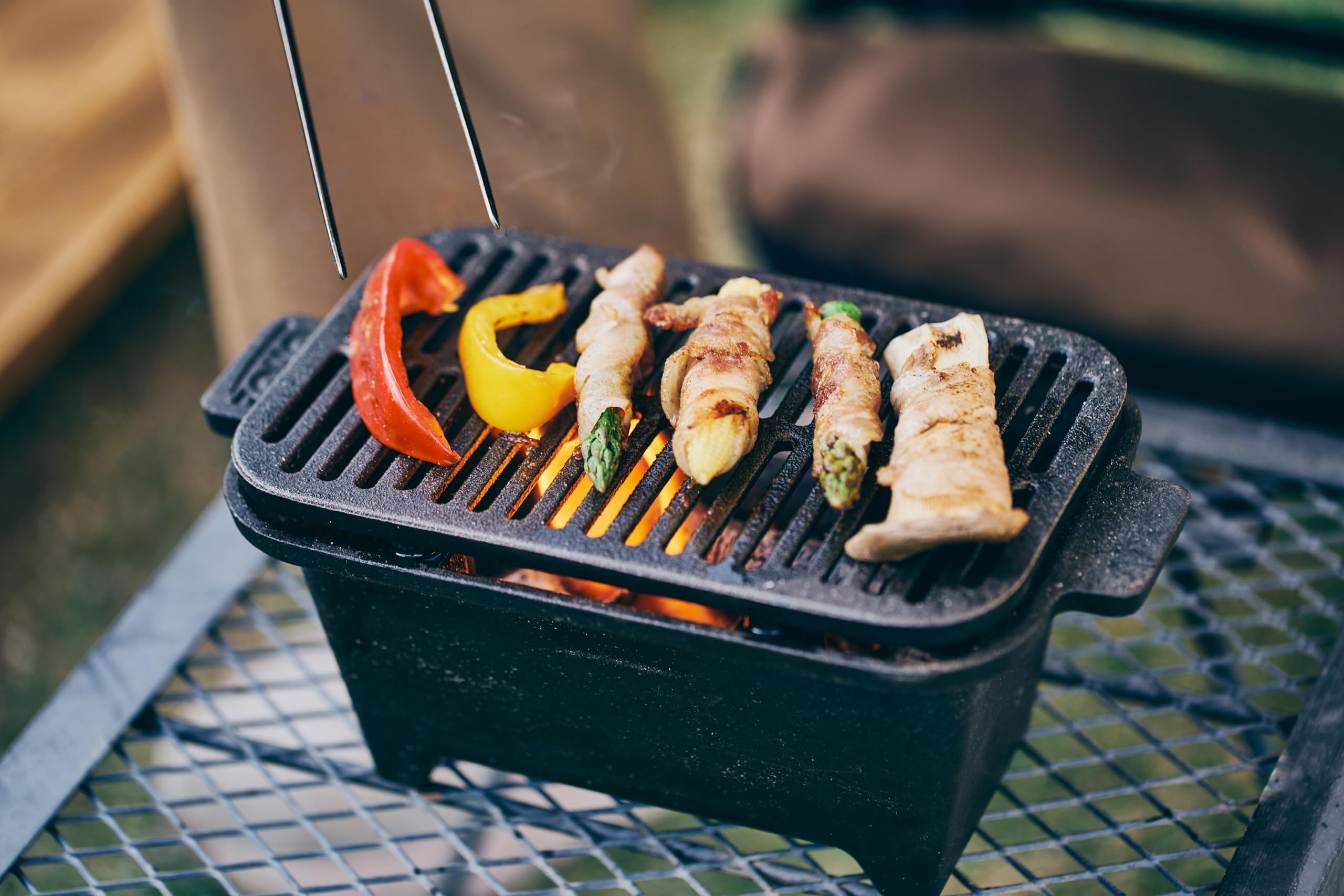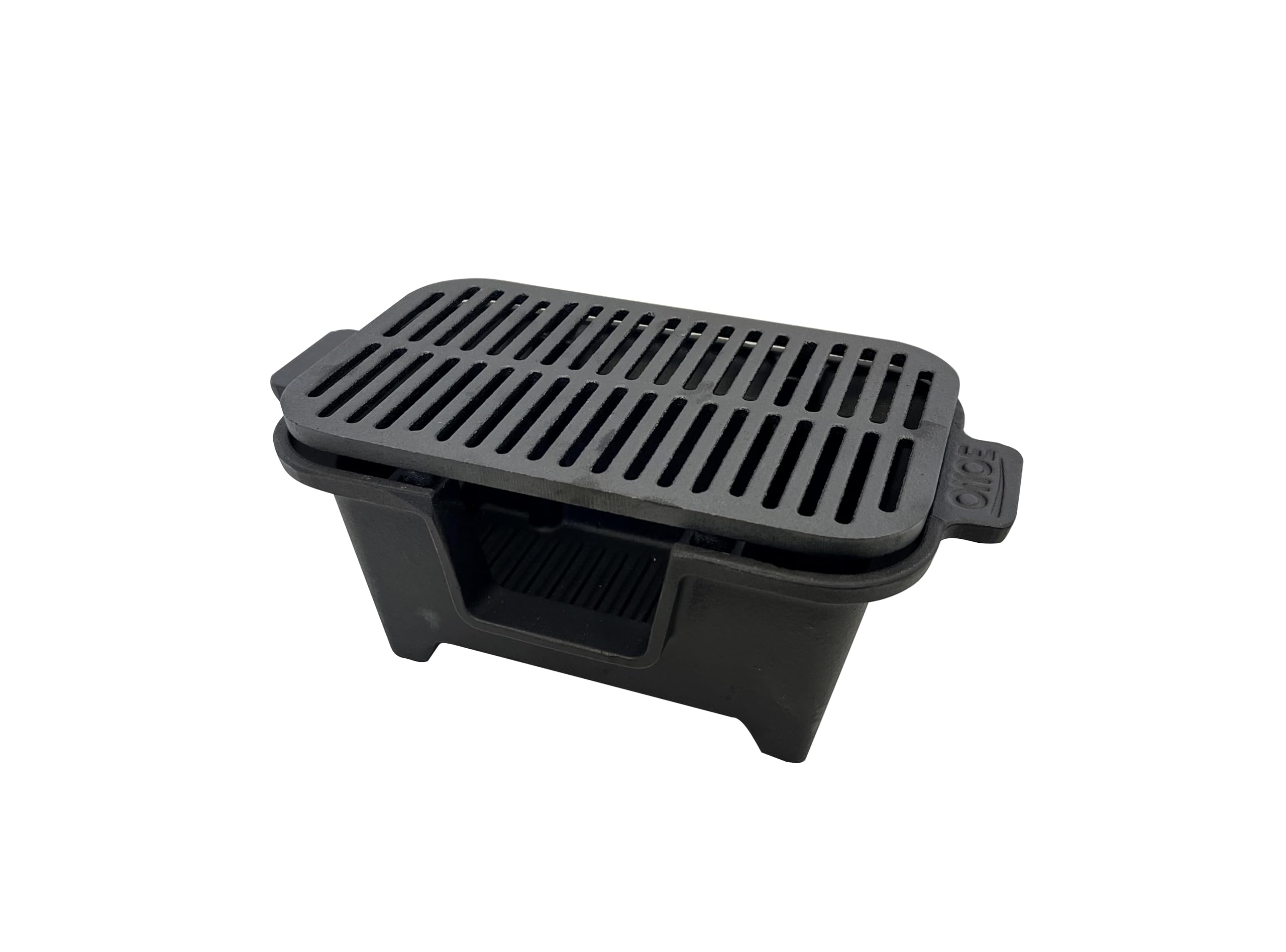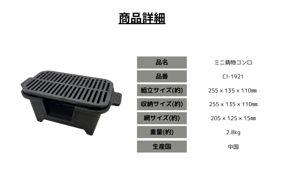 尾上製作所(ONOE) 鉄鋳物こんろ角型/ミニ鋳物コンロ バーベキューコンロ 熱伝導で食材の旨みを芯から引き出す 鉄分補給にも効果的 きれいな焼き目を付けられる 熱が全体に均一にゆきわたりムラなく焼ける焜炉 キャンプ