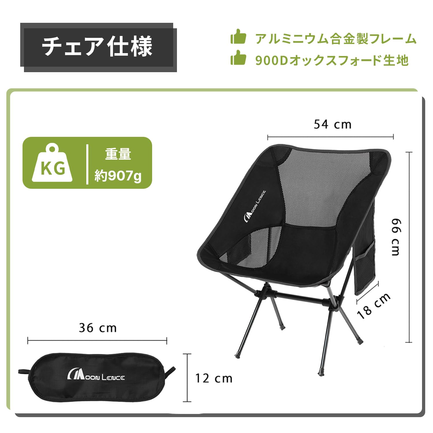 MOON LENCE アウトドア チェア キャンプ 椅子 折りたたみ コンパクト 超軽量907g イス 収納バッグ付き ハイキング お釣り 登山 耐荷重150kg