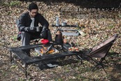 尾上製作所(ONOE) BBQテーブル T-4683 大型BBQコンロにも対応 コンロ回りに食器などを置くことが出来る 折りたためてコンパクトに収納可能 脚は本体に収納可能 2種類のストッパー付き 立って/座って調理可能 高さ2段階調整可能 キャンプテーブル アウトドアチェア