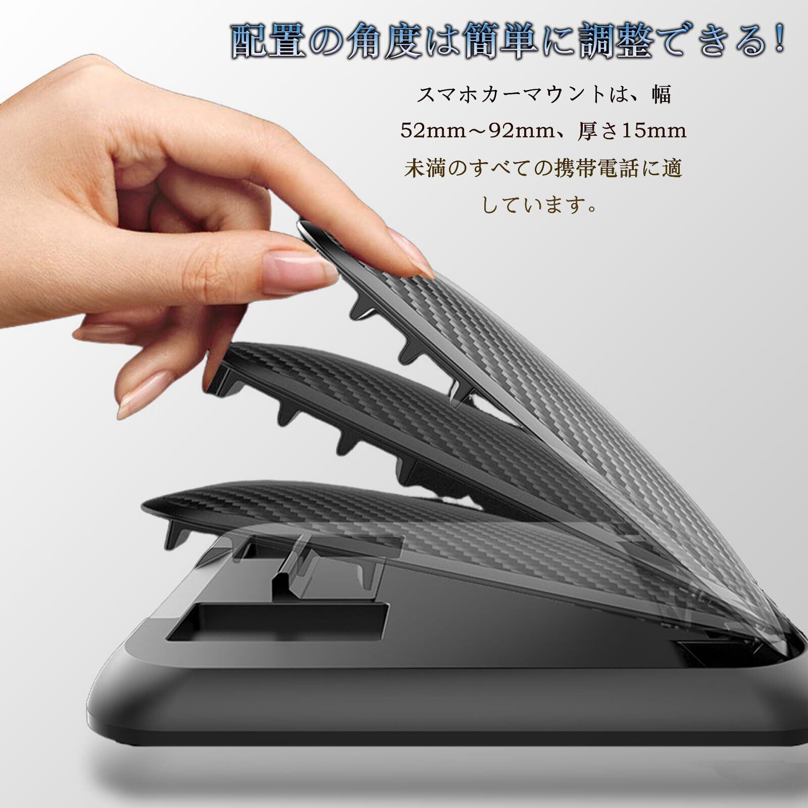【高品質・カーボンファイバーパターン】カーボンファイバーパターンで高級感があります。車載用マウントは、無毒で無味、耐摩耗性、耐久性、洗濯可能、再利用可能、柔軟性のある高品質の環境用シリコン素材で作られています。長い寿命を誇ります。ご購入前の注意事項:非常に急な坂道や凸凹道に遭遇した場合、携帯電話が振り落とされないように、携帯電話を2速または3速のスロットに入れることに注意してください。 ご不明な点がございましたら、当店にご相談ください。6ヶ月以内に。交換または返金サービスを提供することができます。