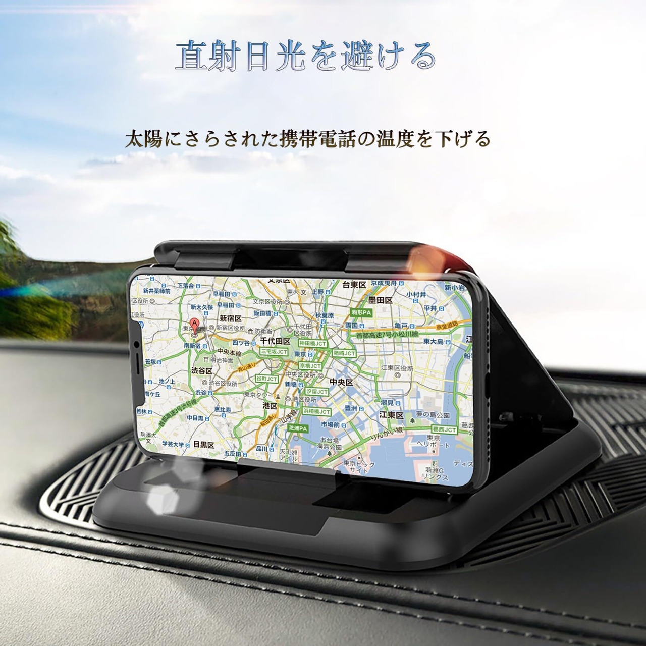 【直射日光を避ける・運転に特化した角度調整】上のマウントカバーが日除けしてくれテカりを抑えて直射日光の熱からもスマホを守ってくれます。直射日光があたらなくなるので日射しによるスマホの異常発熱が軽減され。寝かせすぎると日光が反射して見辛く。立ちすぎた角度は安定感に不安が。私たちの製品は、人々が見やすい角度に配置され、安定性も抜群です。
