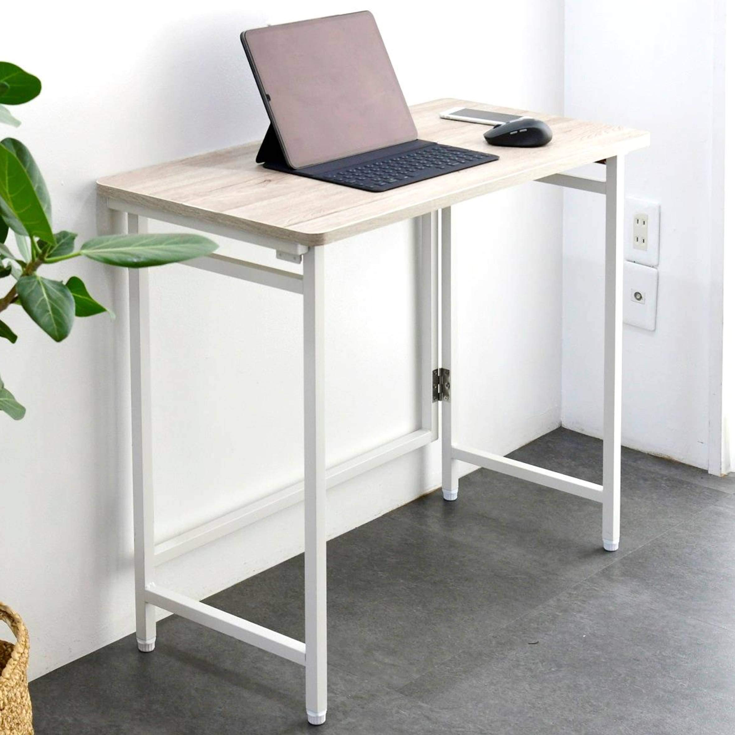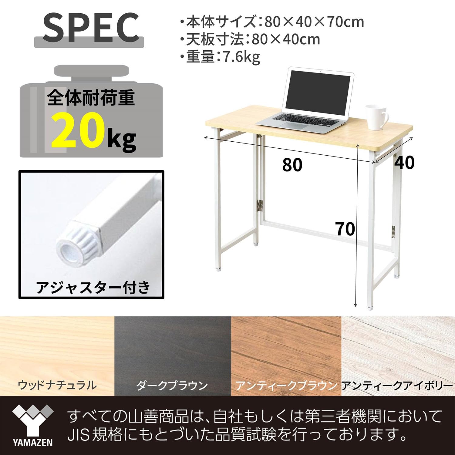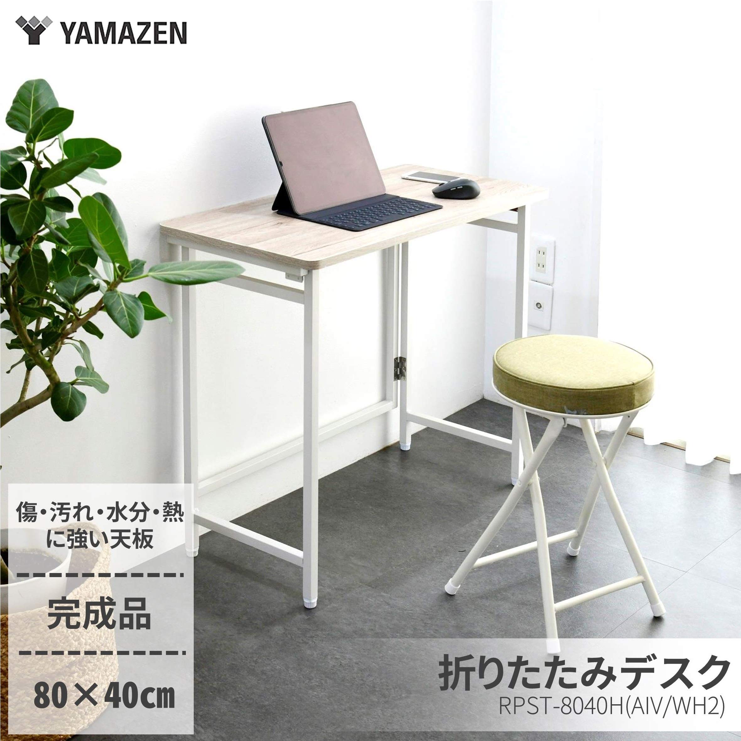 【在庫処分】山善(YAMAZEN) 折りたたみ デスク 幅80×奥行40×高さ70cm コンパクト 傷・汚れ・水分・熱に強い天板(メラミン加工) なめらかな表面 角が丸い アジャスター付き 完成品 アンティークアイボリー/ホワイト RPST8040H(AIV/WH2) 在宅勤務