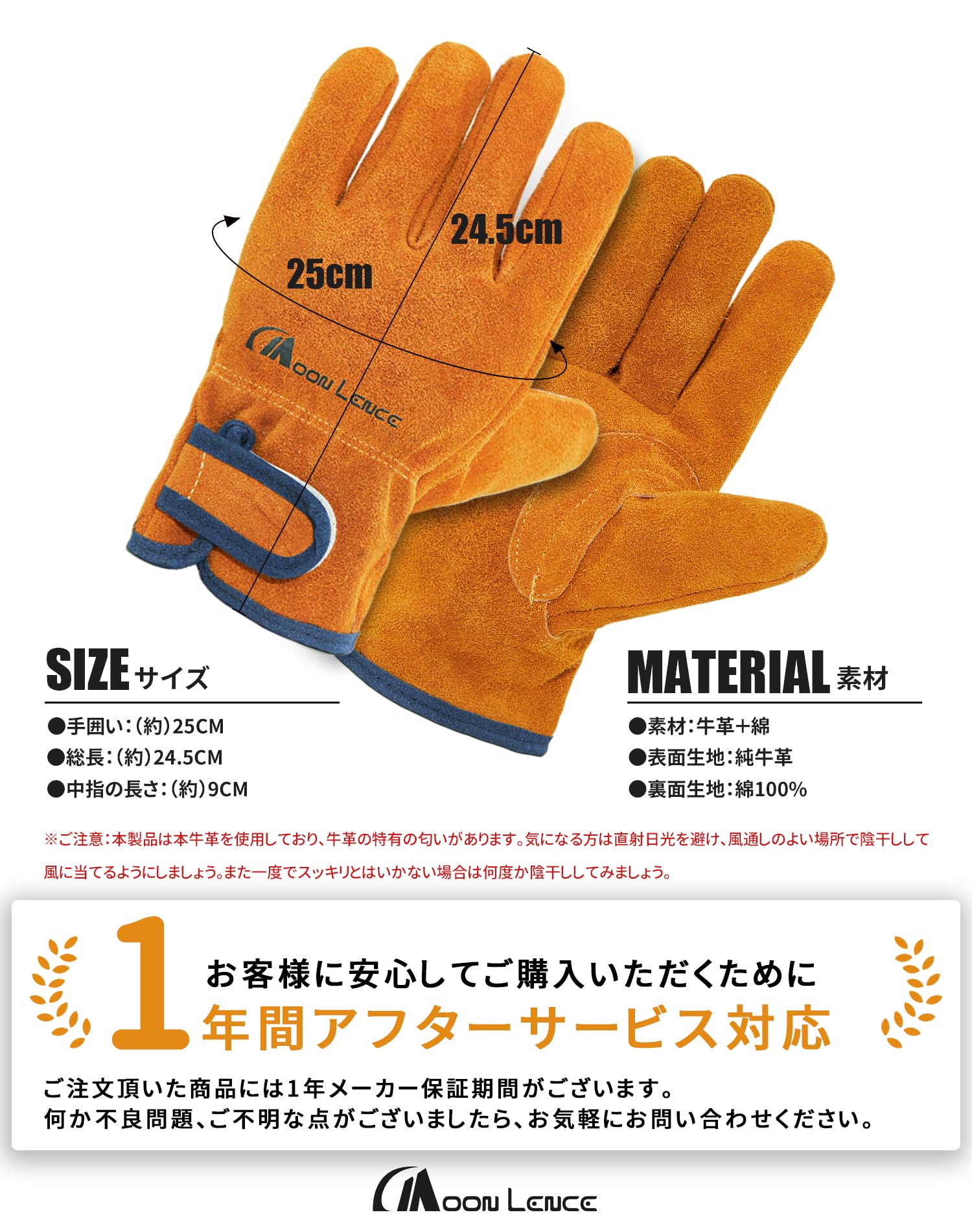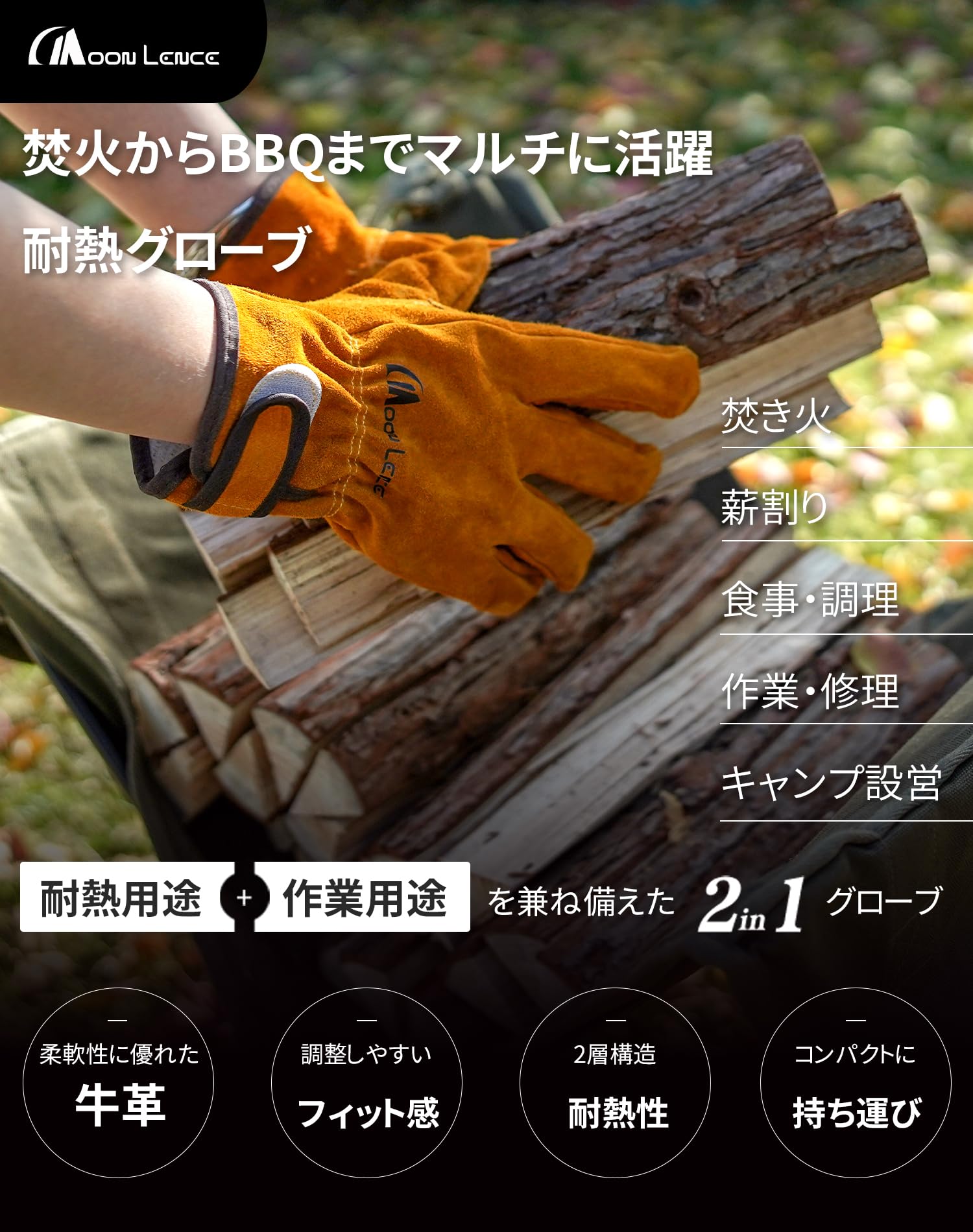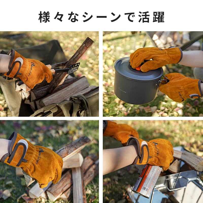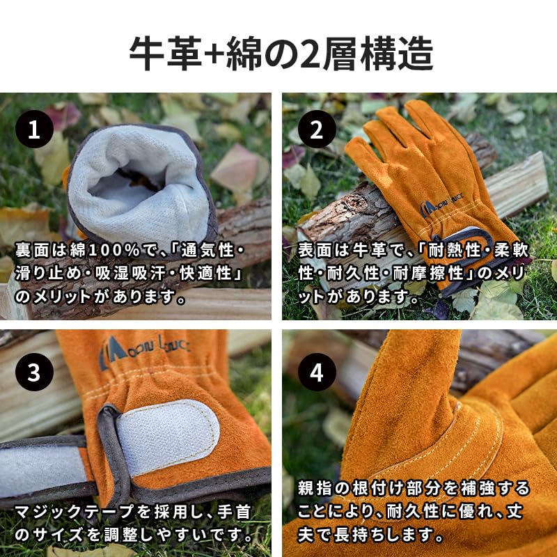[MOON LENCE] 耐熱グローブ 耐熱手袋 牛革製 耐高温 耐摩耗性 キャンプグローブ レザーグローブ キャンプ BBQ 料理 アウトドア 焚き火 薪ストーブ 作業用 園芸用 M DKST001