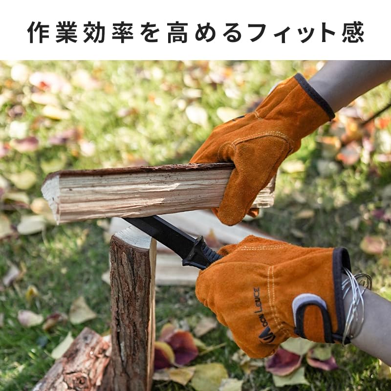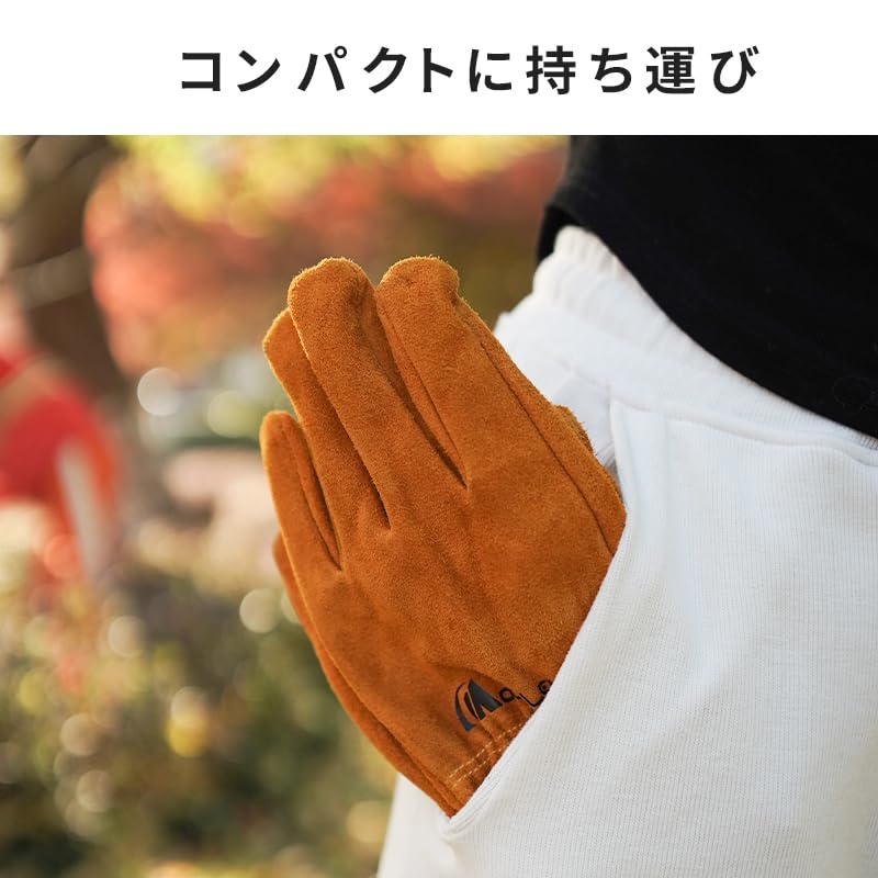 【耐久性が抜群】グローブは牛革を採用して、耐摩耗性が高い、耐久性も優れます。親指と人差し指の間のところには耐摩擦性を兼ねた革の補強があり、キャンプ、BBQ、アウトドアなどでケガ防止になります。