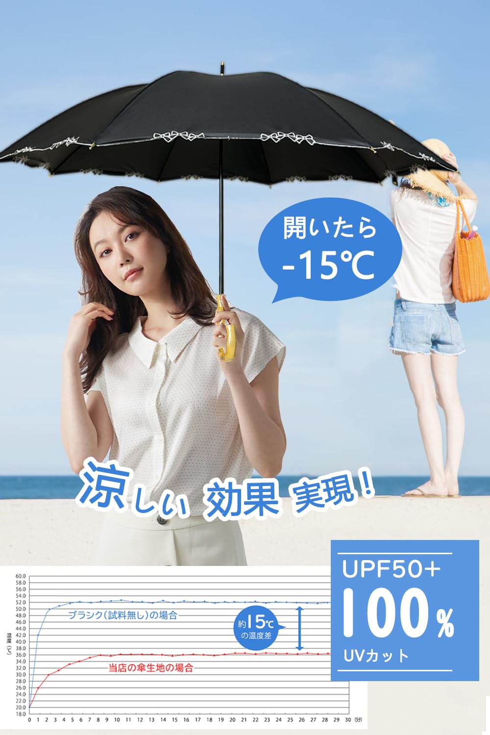 ✦【夏の日焼け対策・日傘 uvカット 100 遮光】UVカット加工が施されている生地を採用したうえ、傘面がコーティングされた傘で上方からの日差しをしっかりカットし、下方からの輻射熱が裏の黒で吸収して、炎天下でもジリジリの日差しを遮ってくれ、遮熱効果もあります。UVカット率は99.9%以上、大切なお肌を太陽光線、紫外線からガードでき、日焼け対策アイテムとしても心強い。