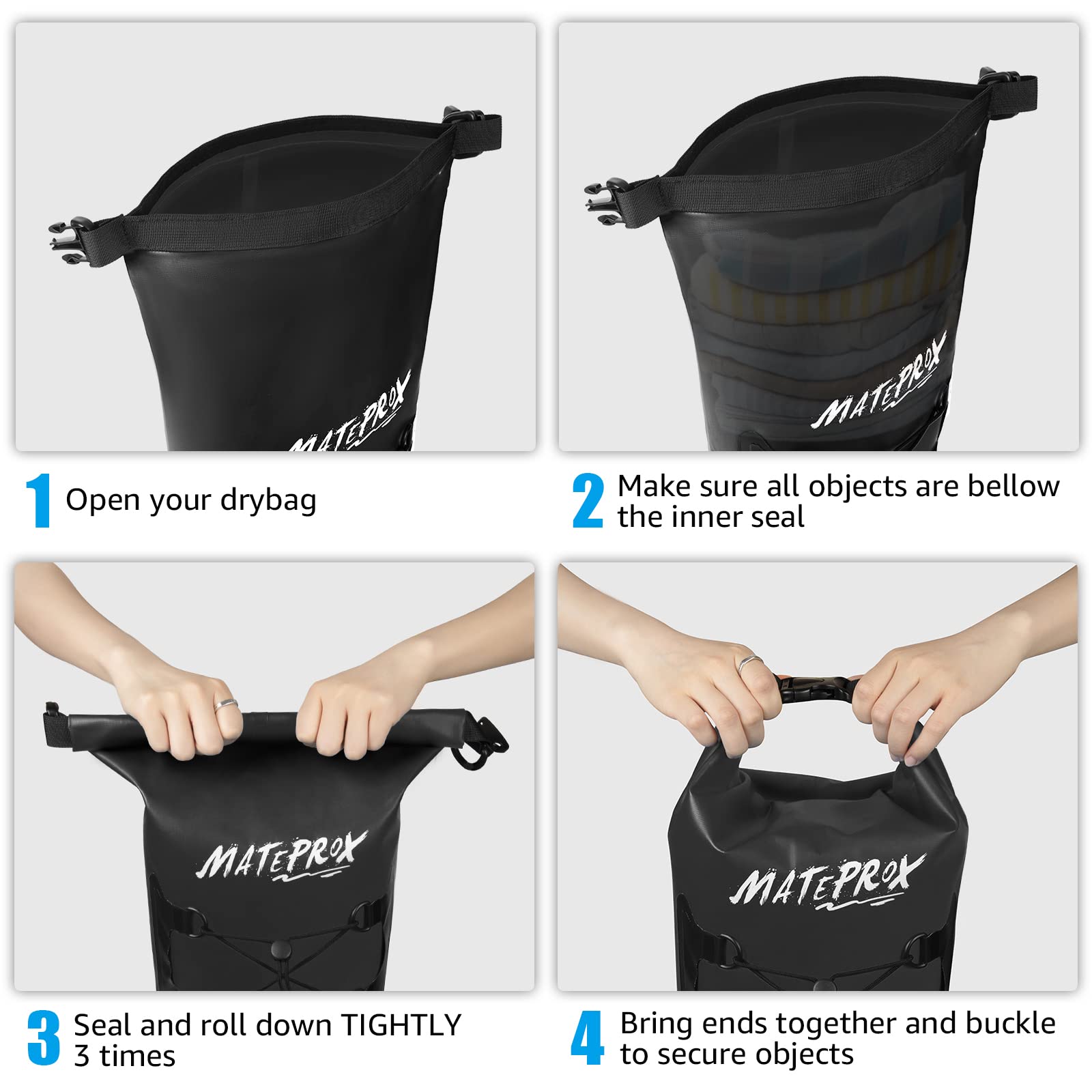 MATEPROX ドライバッグ 防水バッグ 10L/20L ドラム型 完全防水 折りたたみ 軽量 防水ポーチ付き 海水浴/釣り/ビーチ/水泳/登山/アウトドア(ブラック 10L)