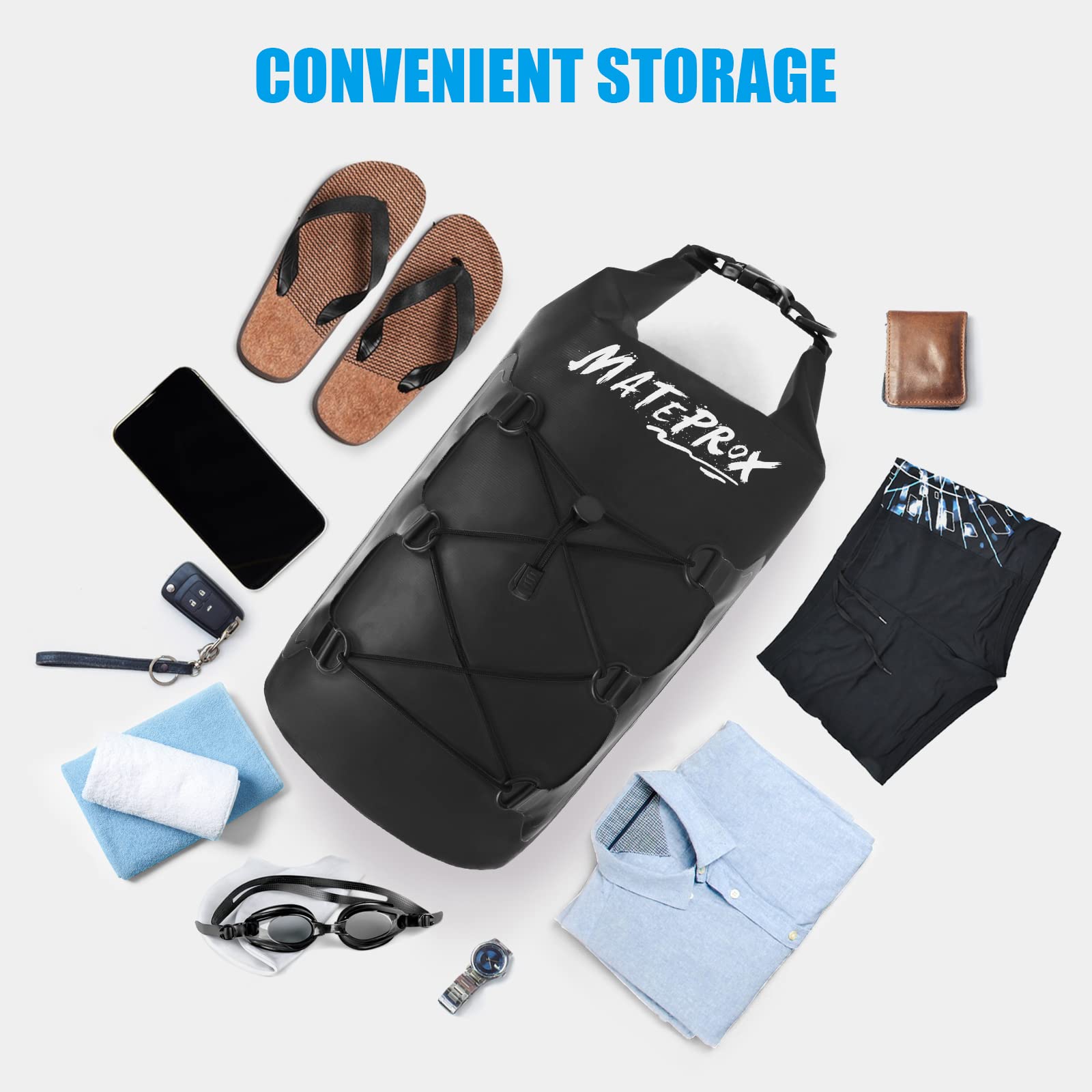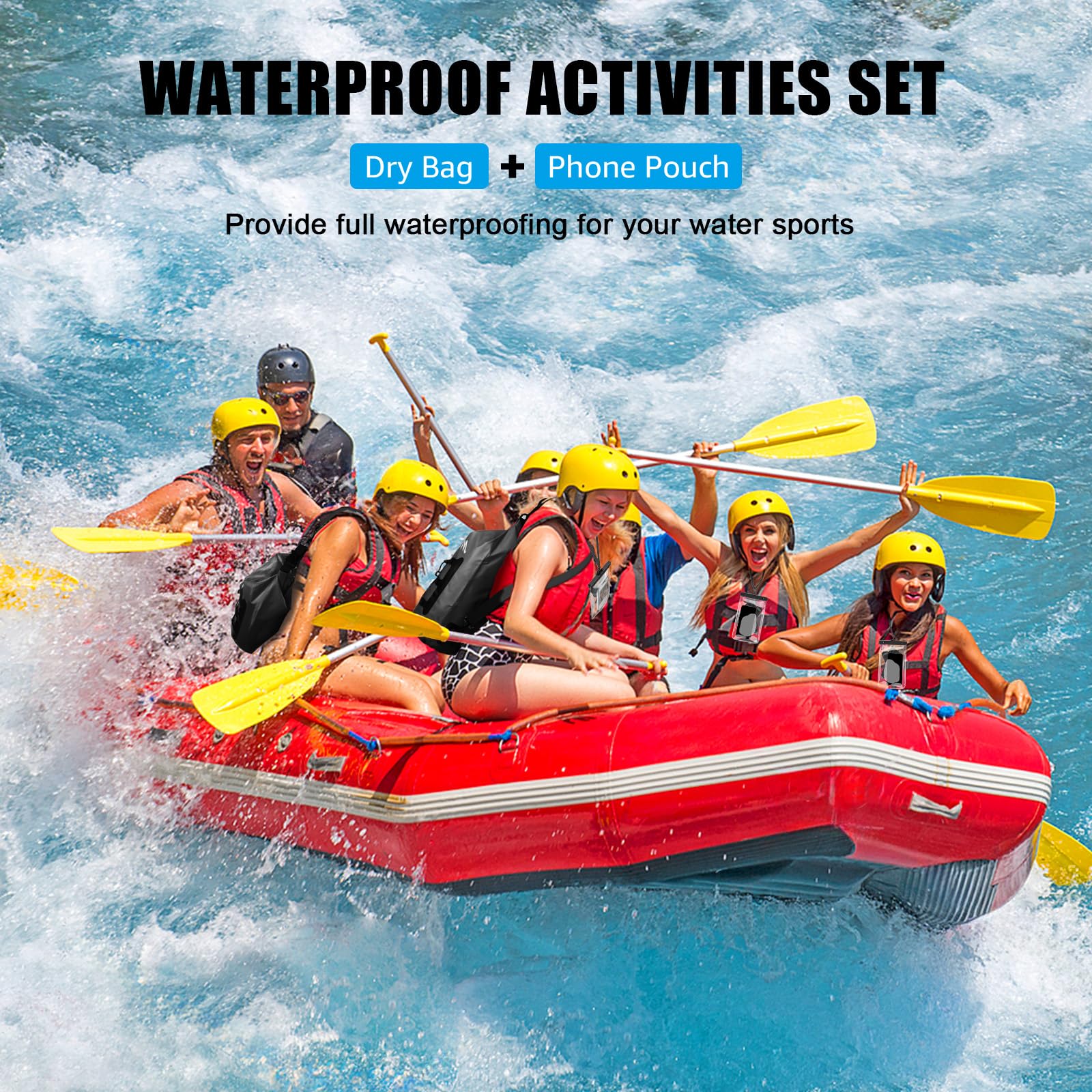 完全防水設計:高密度PVC素材と強化された溶接技術で、完全防水を実現。濡れやすいスマホや貴重品も安心して保管できます。