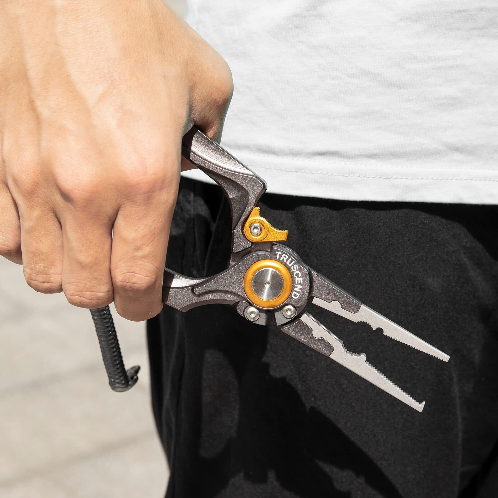 【人間工学に基づいてデザイン】TRUSCEND社が長年研究し続けたハンドルの最適円弧と空間設計により、人間工学に基づいて改良された独自のフィッシングプライヤーは、グリップ部分が指先にフィットし、手の疲れを軽減します。グリップ力は抜群です。実際の利用シーンをしっかり考慮して、スライドロックスイッチは片手で操作できて非常に便利です。