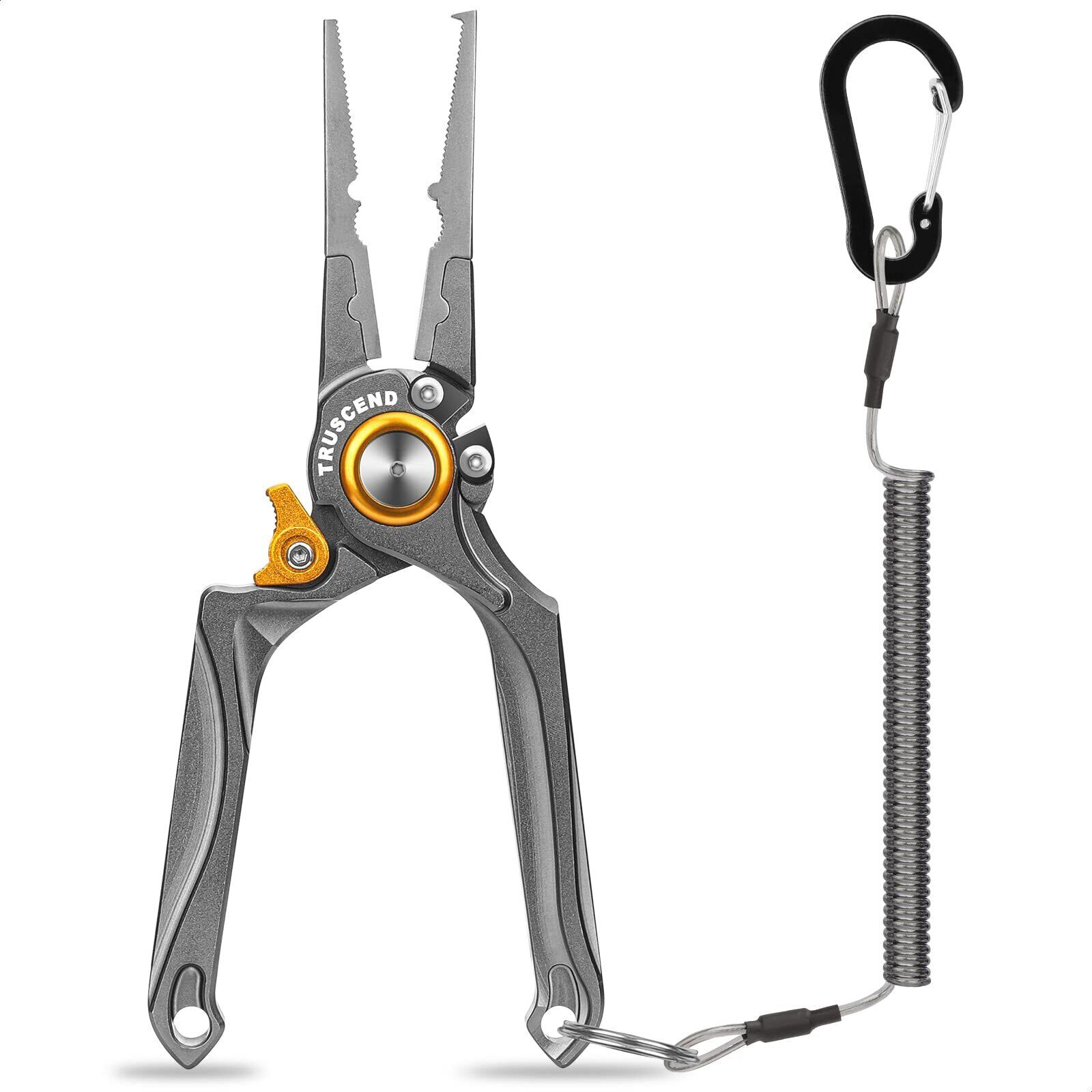 TRUSCEND 釣り プライヤー フィッシングプライヤー 【航空アルミ製・ロック付き】 人間中心設計 手に馴染みやすい 操作簡単 錆びない 海水対応 釣り用ペンチ PTFEコーティングされ 防錆 耐食性 耐摩耗 多機能プライヤー フックリリーサー ラインカッター フック外し 針外し 釣り プレゼント 贈り物