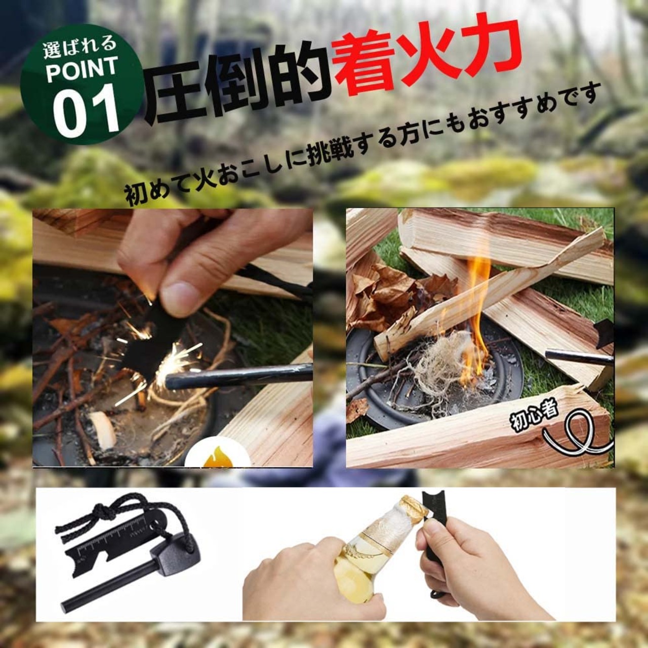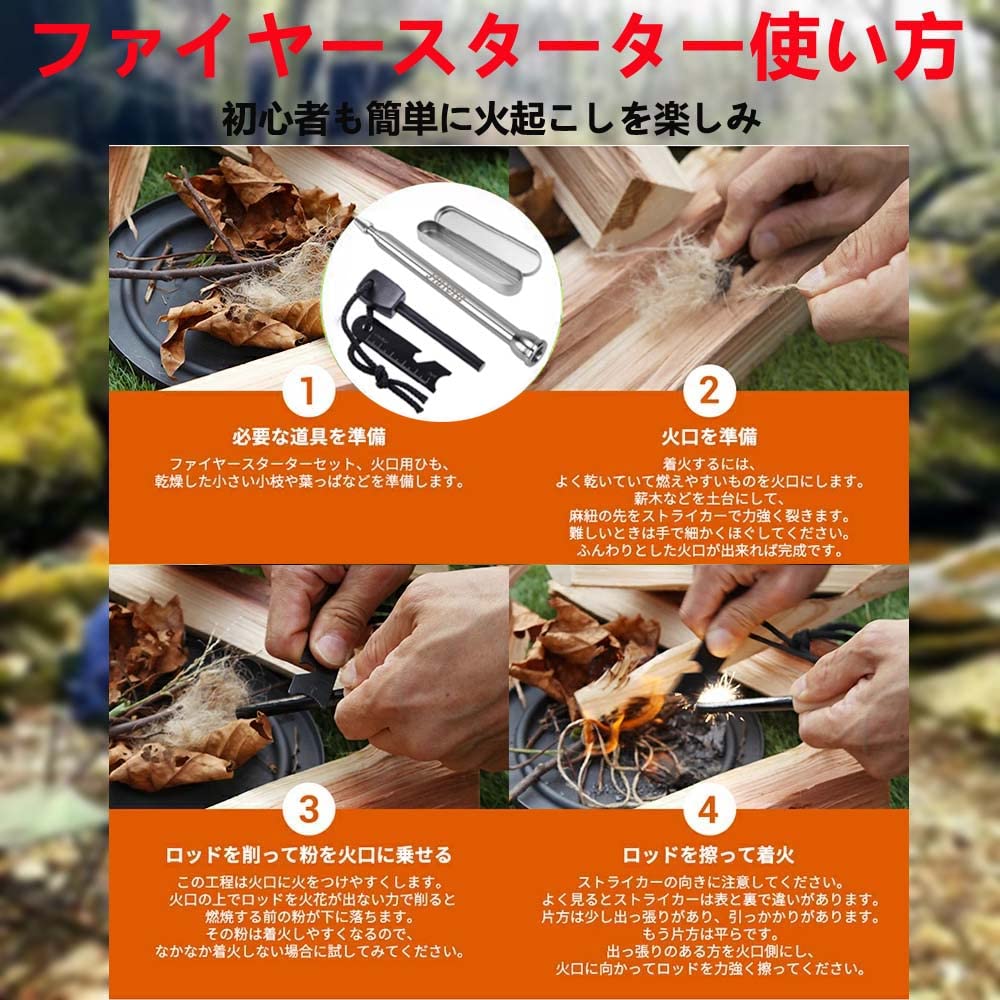 【火打ち石仕様】慣れれば10秒ほどで紙・ティッシュ等に着火し、楽に火起こしが可能です。通常のマッチと違い、水に塗れても拭き取るだけですぐに使えます。マグネシウムを削って火を起こす緊急着火器 軽量なのでキャンプや緊急災害時など火のないところで活躍