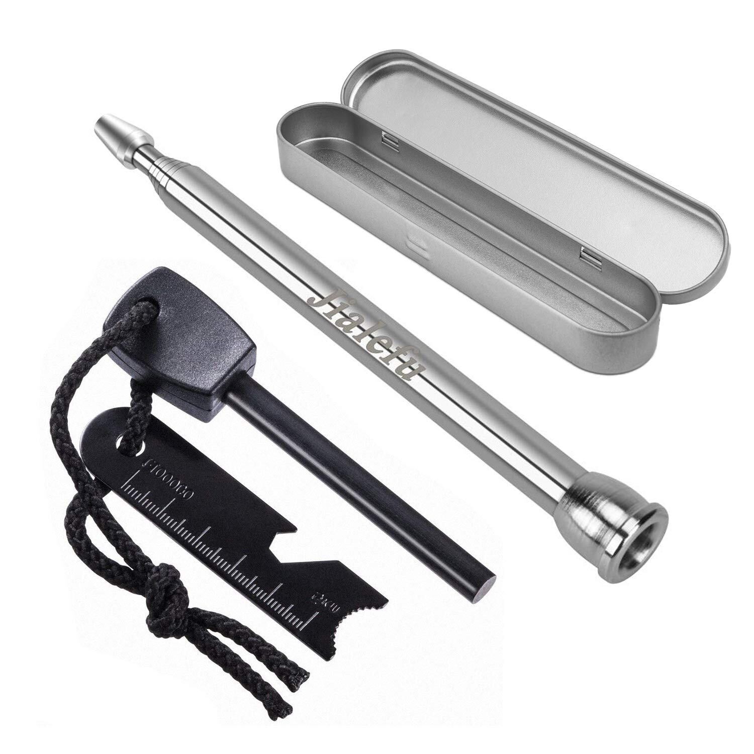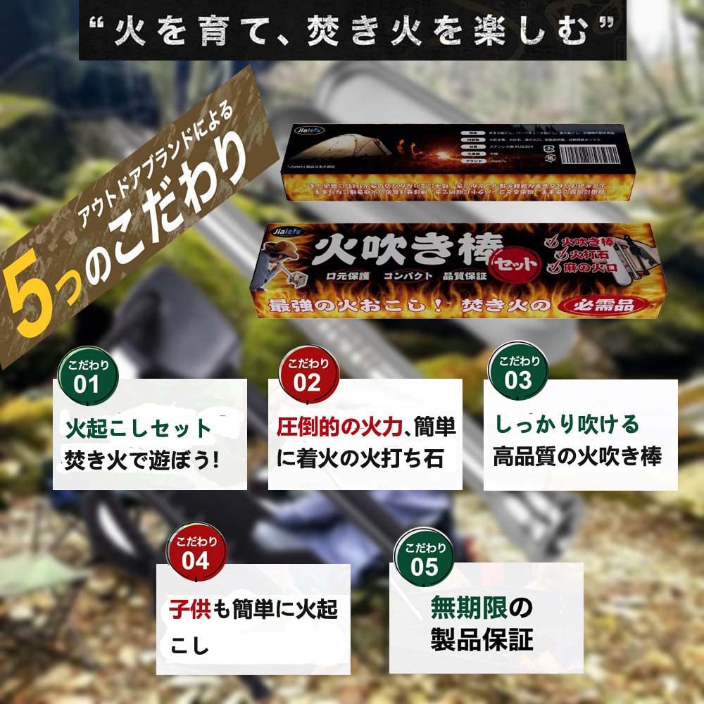 Jialefu 火吹き棒 火起こし ふいご 焚き火 筒+火打石 火打ち石 ファイヤースターター 着火具 バーベキュー用 BBQ ツール セット サバイバルツール