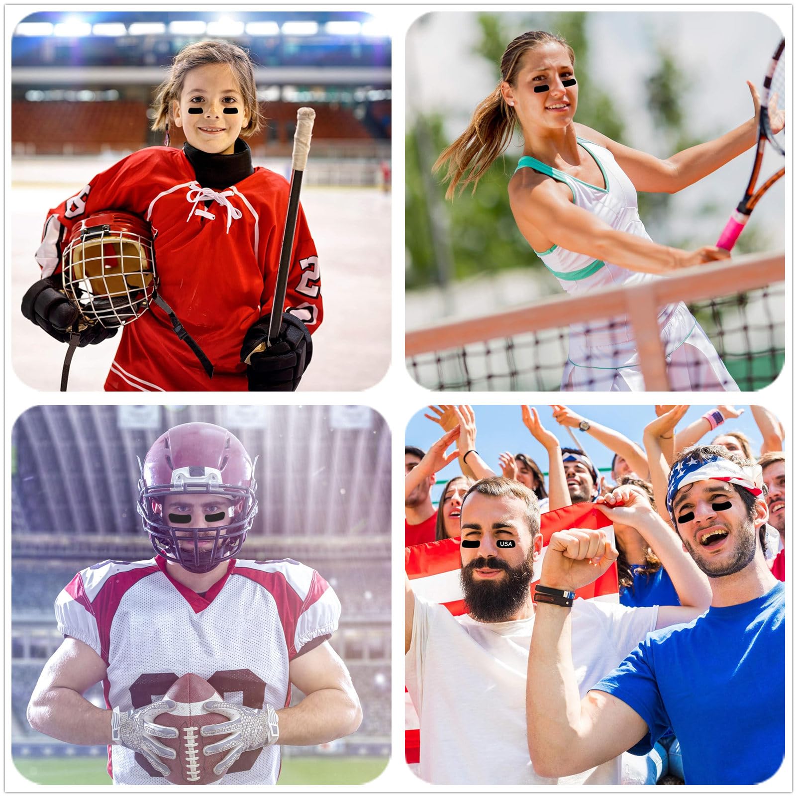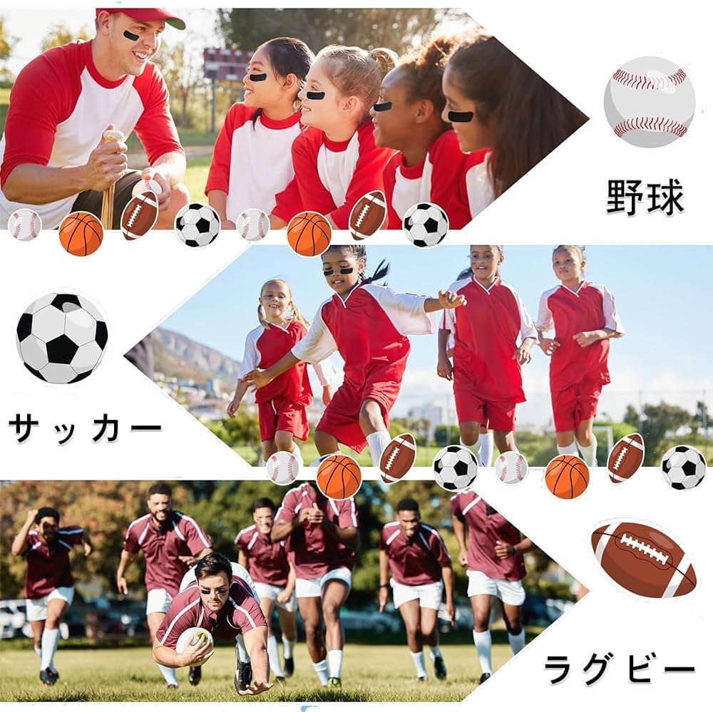 【多機能】黒い目のシールは日光の眩暈を減らすのに役立ち、男の子、子供と青少年のスポーツ場、例えばサッカー、野球、ソフトボール、ホッケーなどの試合だけでなく、スポーツテーマパーティー、誕生日パーティー、学校のスポーツパーティーにも適している
