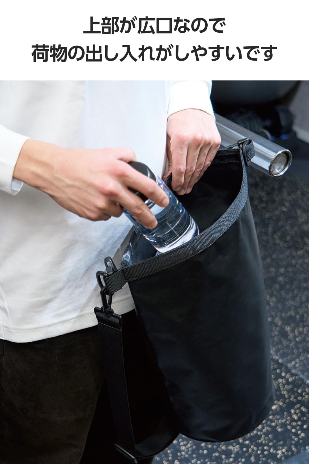 バッグの上部が広口になっているので、荷物の出し入れがしやすく便利です。