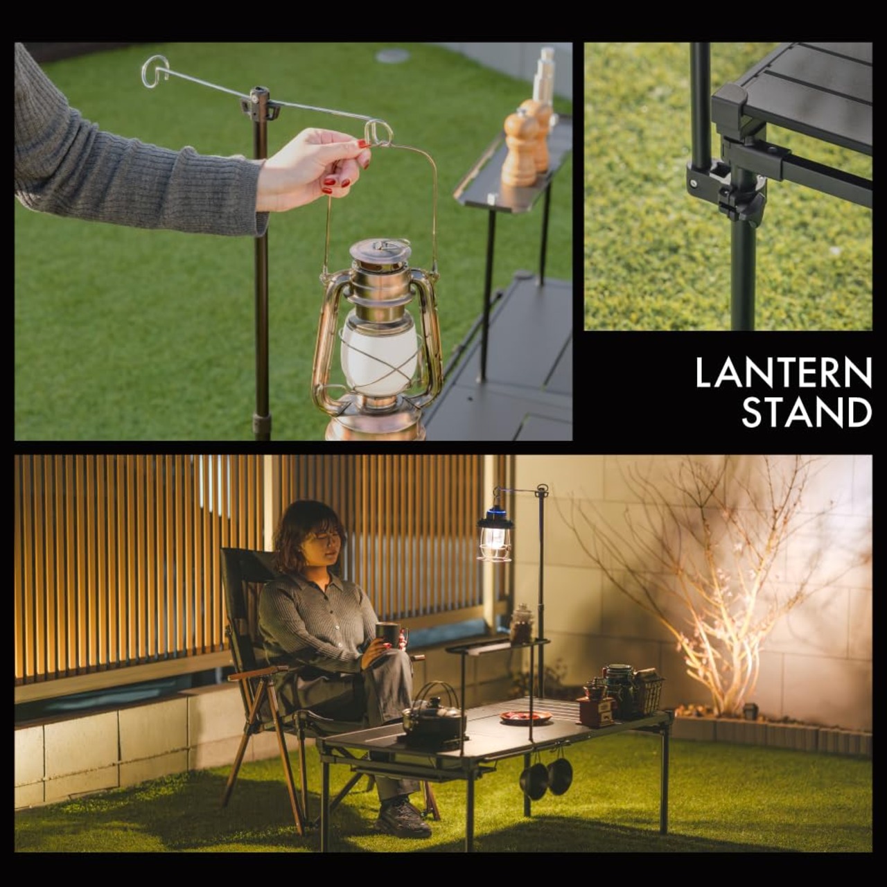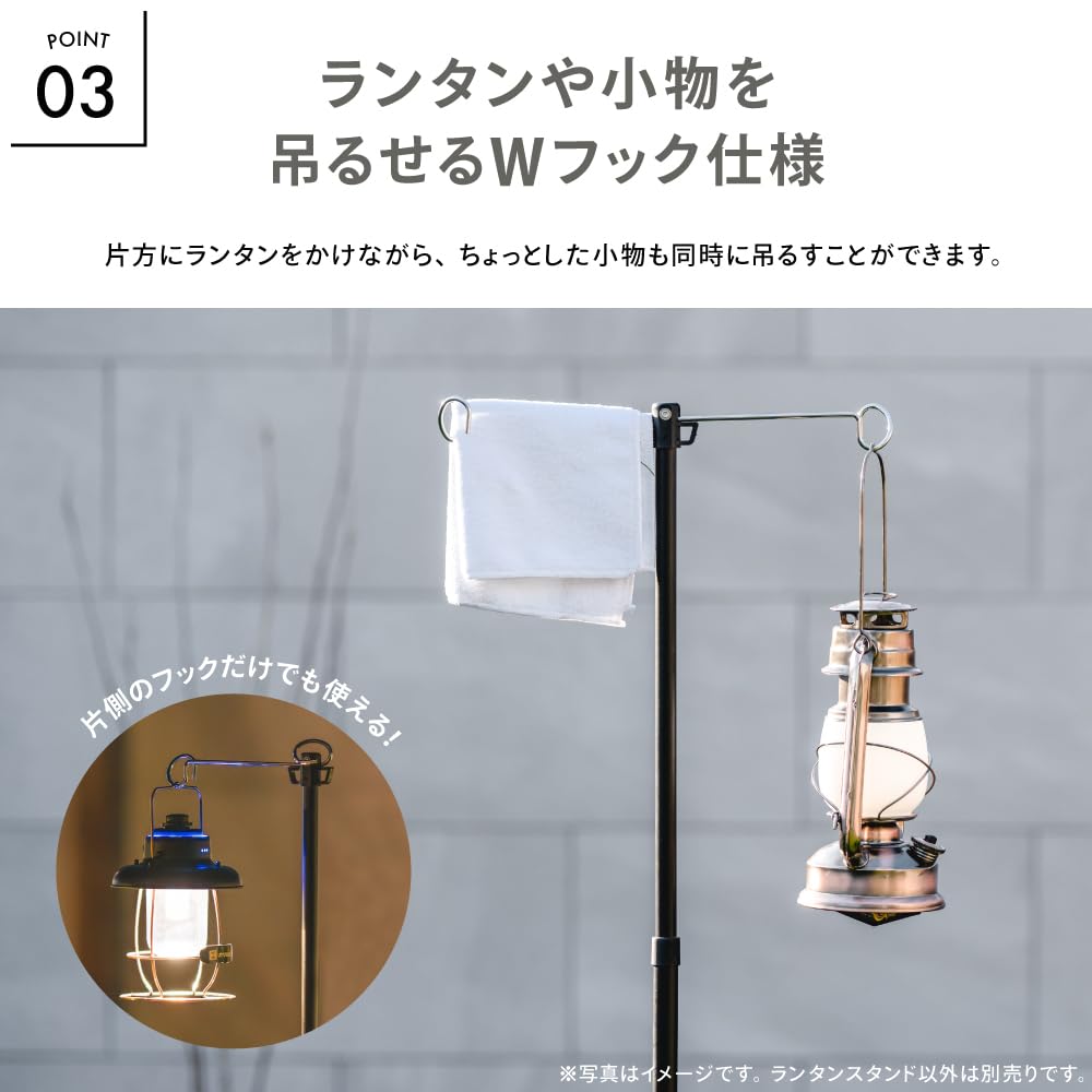 別売りのコンロが置けるマルチテーブルに簡単に設置できるランタンスタンド。 ランタンの置き場所に困ることがなく、テーブルを広々使えます。