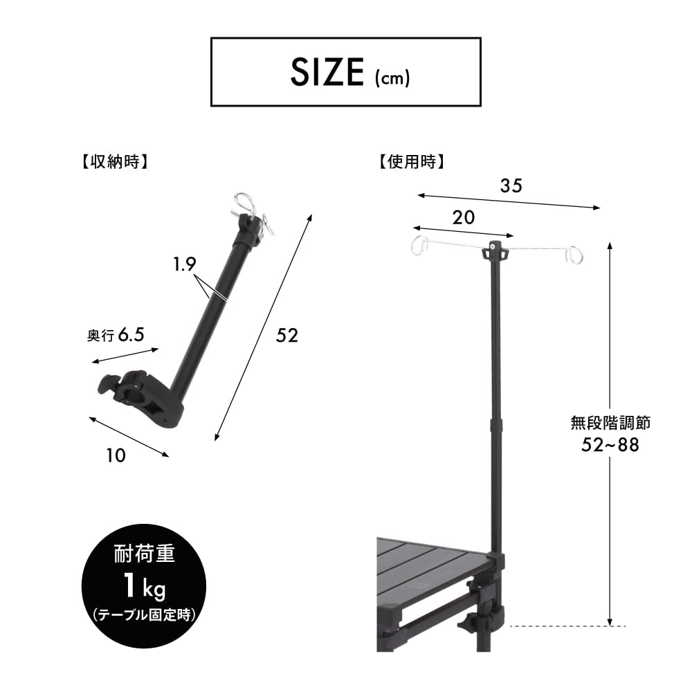 武田コーポレーション 【レジャー・アウトドア・ランタン】 ブラック25・ 35×6.5×42~68cm コンロが置けるマルチテーブル専用ランタンスタンド UN3-CT120BK-RS