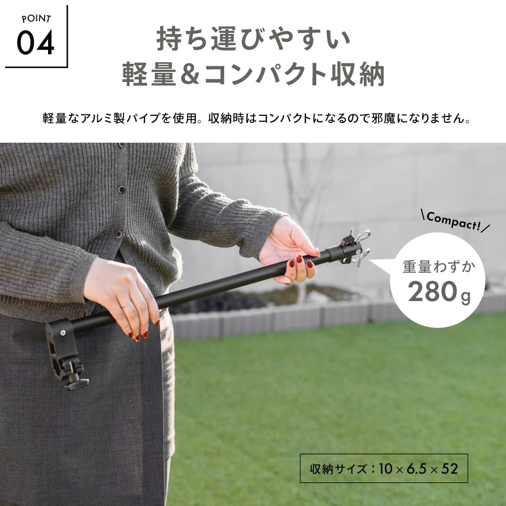 【材質】パイプ:アルミニウム合金(エポキシポリエステル樹脂塗装) フック:スチール クランプベース部、フック固定部:ナイロン
