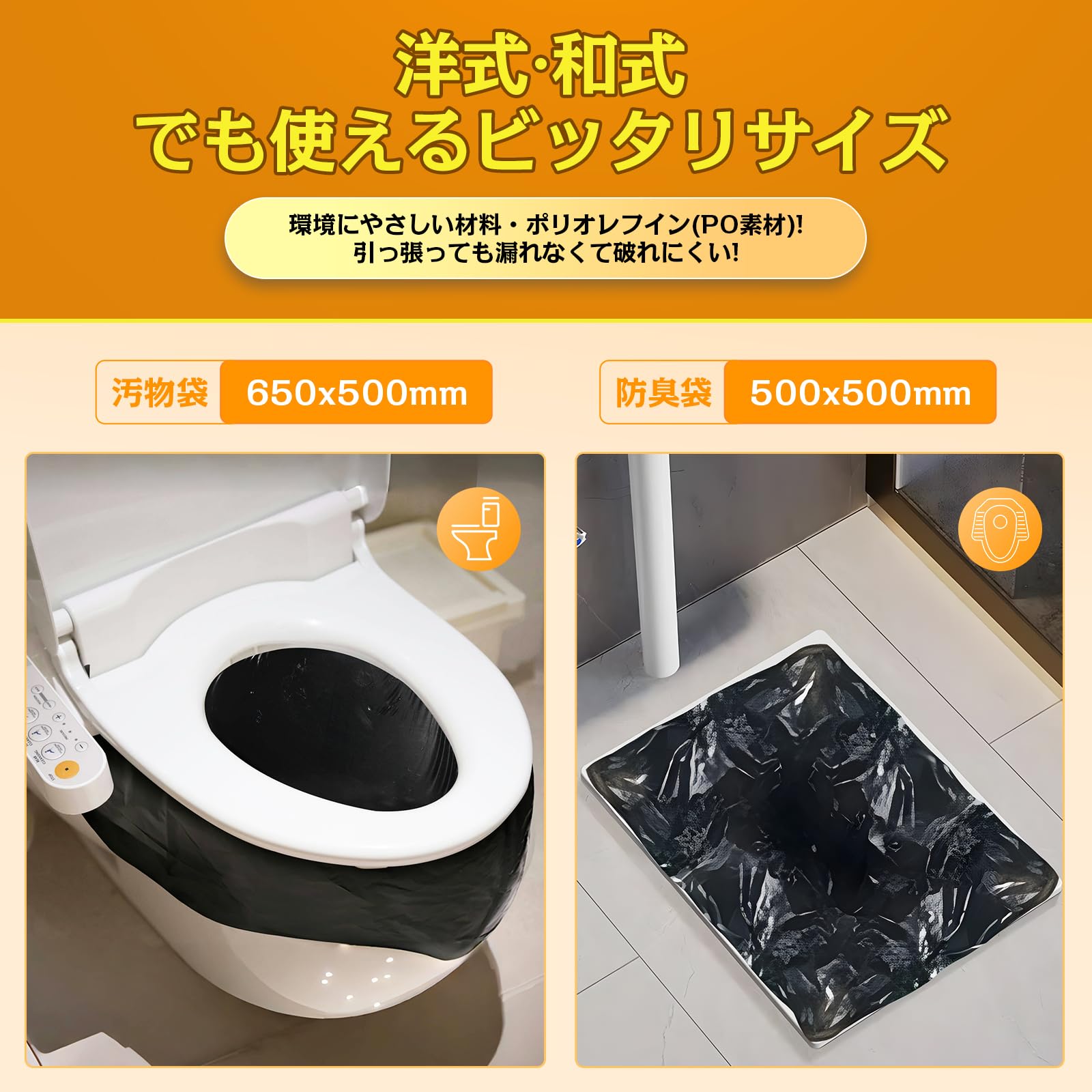 【使いやすい&幅広い用途】:非常用トイレは取り付けはわずか20秒で、便器に汚物袋(黒)を被せ、袋を挟むように便座を下ろして固定し、ご使用後凝固剤を追加するだけです。災害トイレとしてだけでなく、移動トイレとしても使用でき、地震や台風、豪雨などの自然災害などの緊急時にも使用でき、水源のないキャンプや登山などのアウトドア時には移動トイレとしても使用できます!