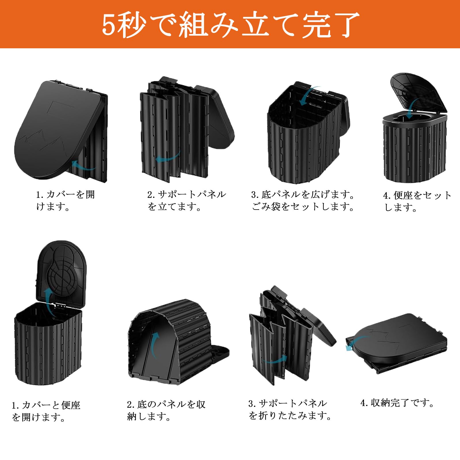 軽量・コンパクトな簡易トイレ:わずか1.8kgで、持ち運びが非常に便利です。折りたたむとさらにコンパクトになり、押入れや車のトランクにも簡単に収納できます。