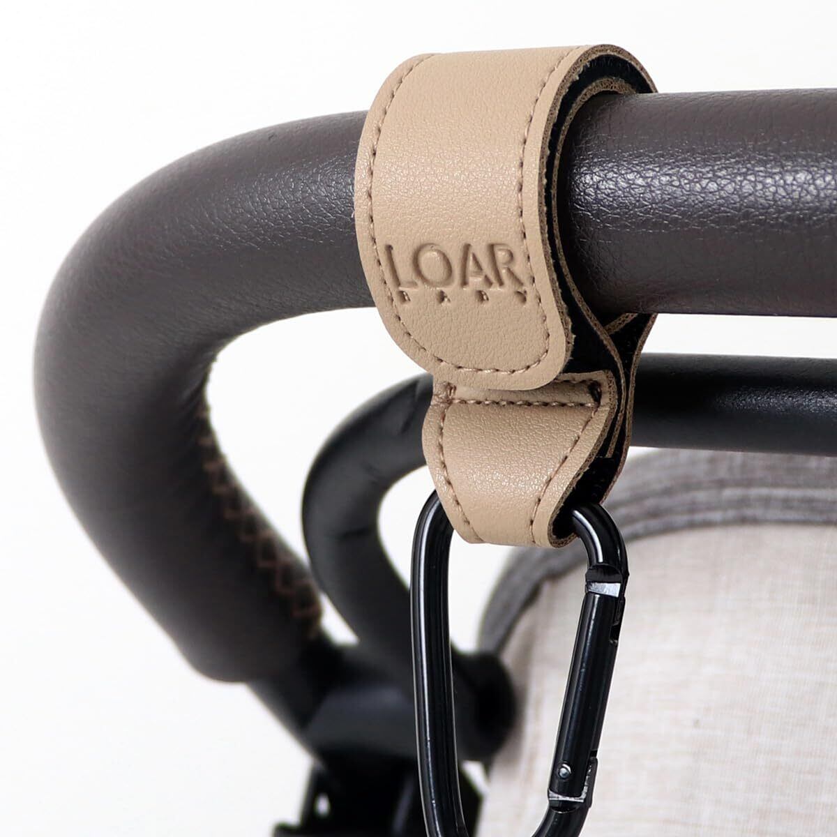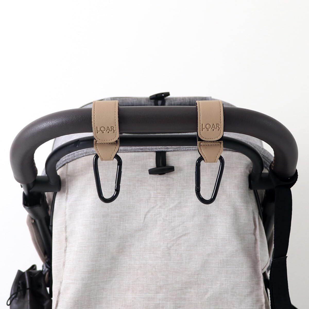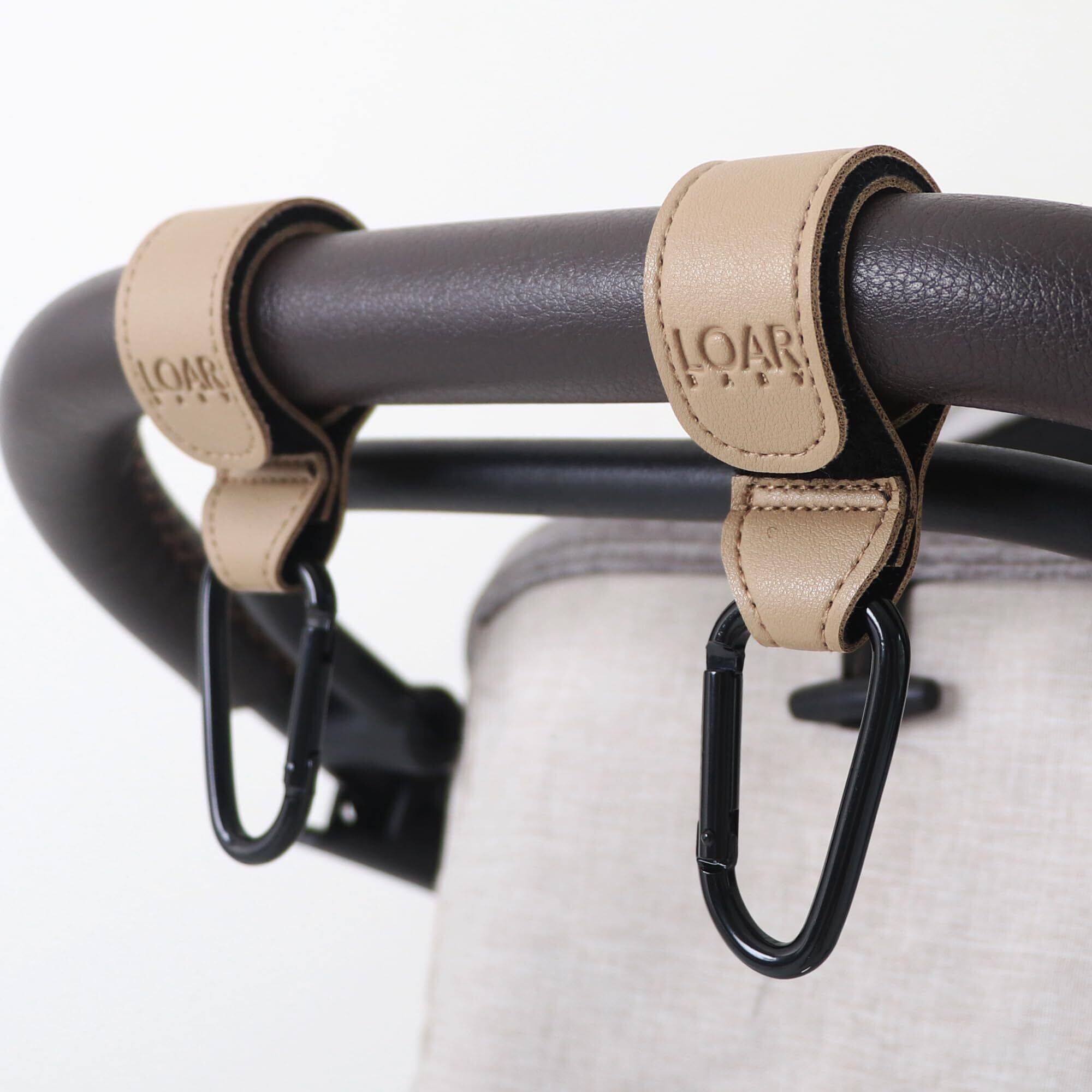 【在庫セール】LOAR BABY(ロアベビー) ベビーカーフック カラビナ ベビーカーグッズ ベビーカー荷物掛け 2個セット カラビナフック おしゃれ 合皮 ギフト プレゼント (グレージュ)
