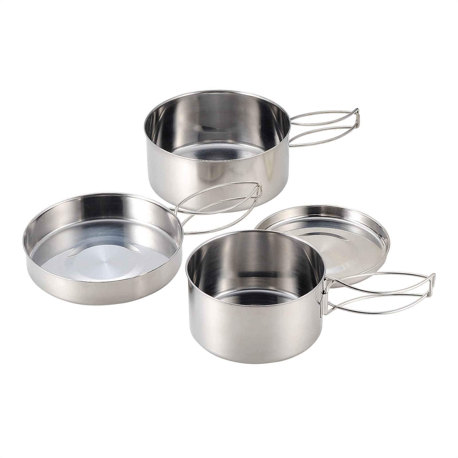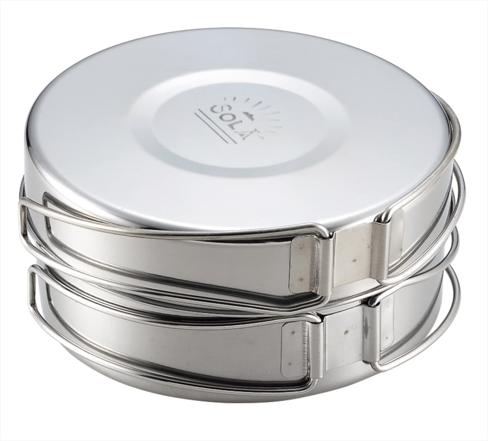 カクセー アウトドア クッカー 丸型 4点 セット ステンレス 鍋 フライパン 皿 直火 コンパクト収納 袋付き キャンプ SOLA ソラ PP-01