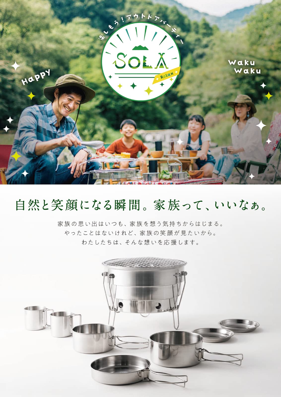 【人気商品】カクセー アウトドア クッカー 丸型 4点 セット ステンレス 鍋 フライパン 皿 直火 コンパクト収納 袋付き キャンプ SOLA ソラ PP-01