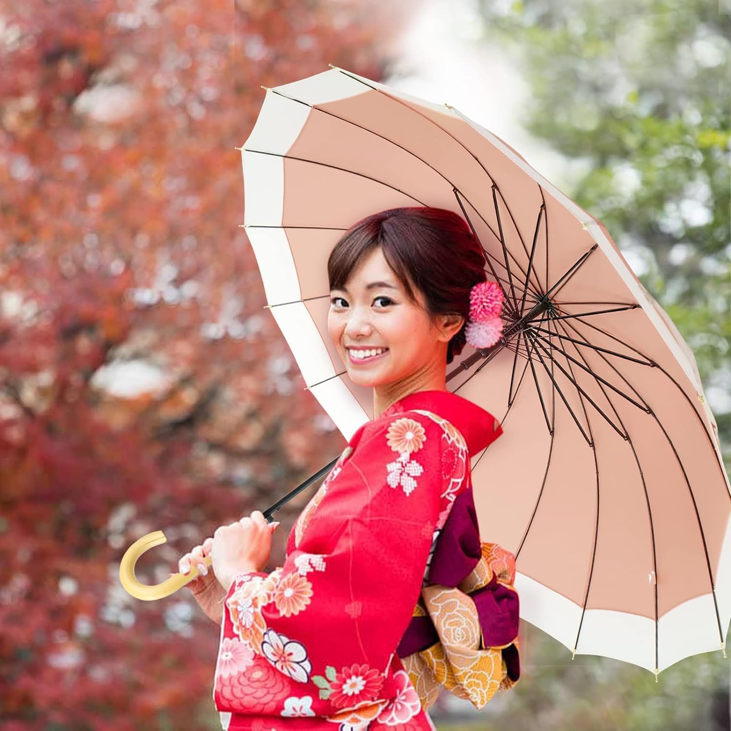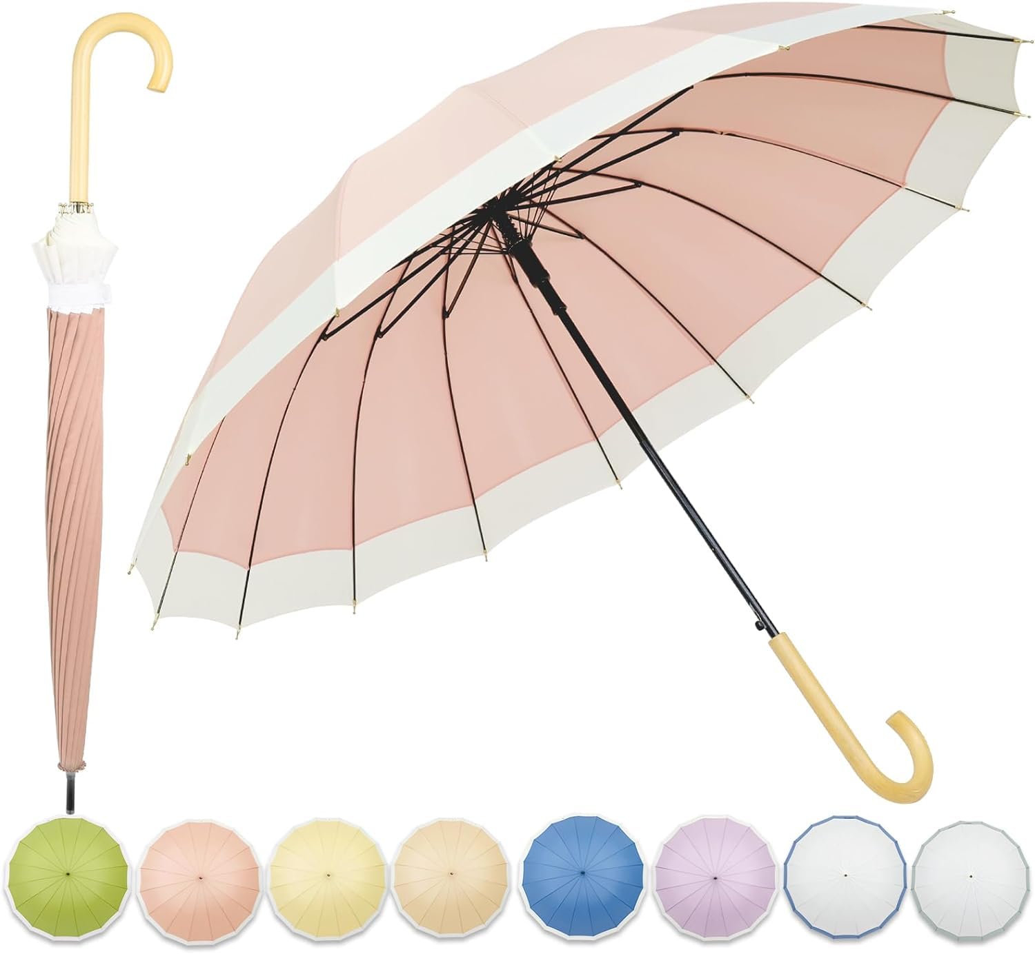 【耐久性に優れ、曲線が美しい傘 】美しい傘 レディース 16本骨は、しなやかで丈夫なグラスファイバー製なので、風にも強く頑丈です。 強風でも簡単に折れたり曲がったりする心配はない。雨と風が同時に襲いやすい日本では、丈夫で壊れにくい傘はとても魅力的だ。 悪天候の中でも風を上手に避けながら使える。
