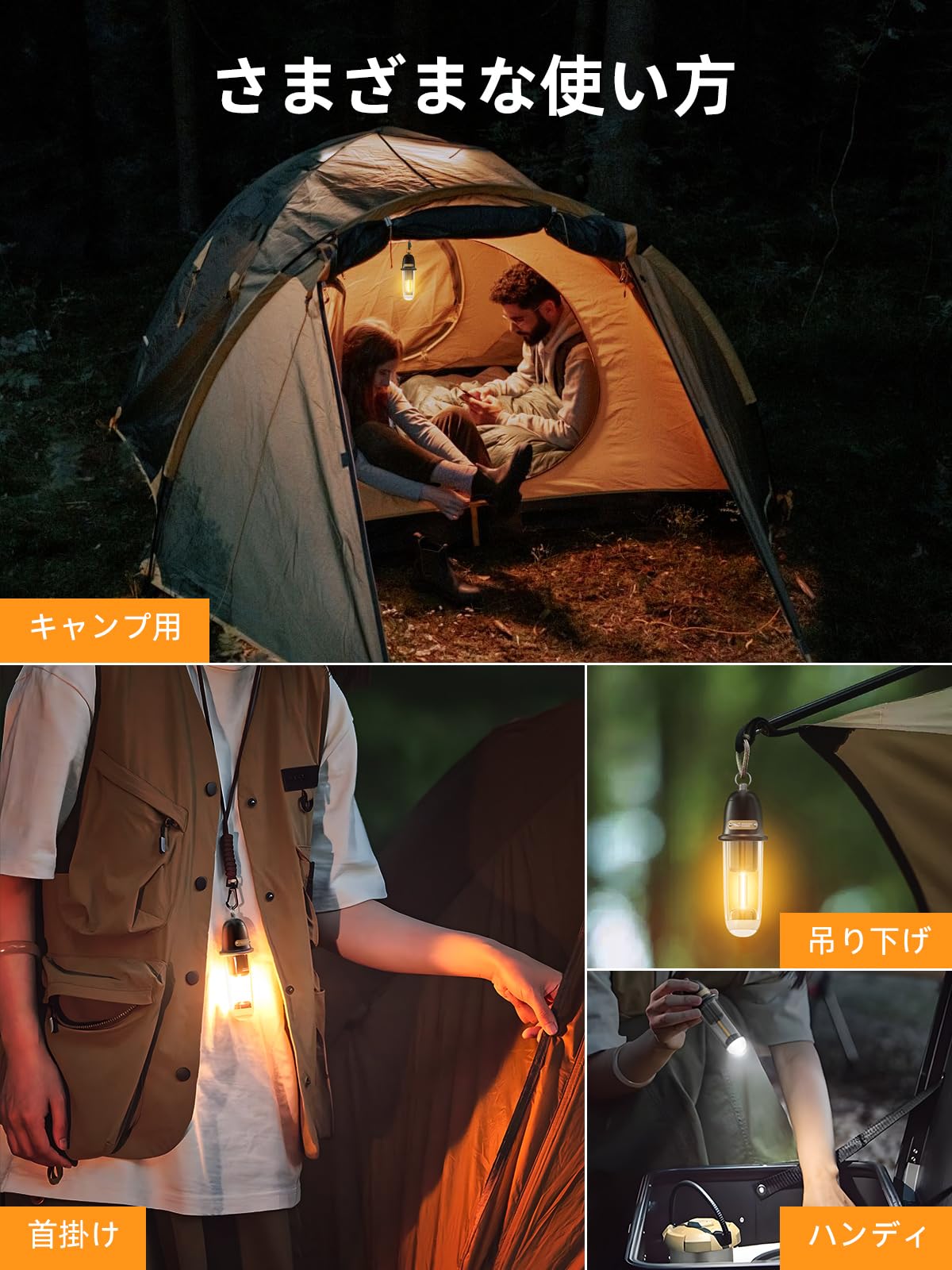 【コンパクト·超軽量デザイン】非常に小型で軽量なデザインとわずか104gの重量で手軽に持ち運びやすいます。付属のストラップを使ってテントや枝に吊るし、ハイキング、登山、サイクリングの時に十分な照明を確保できます。アウトドア活動に最適です!