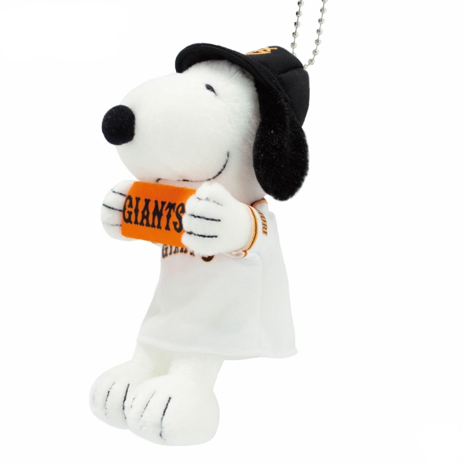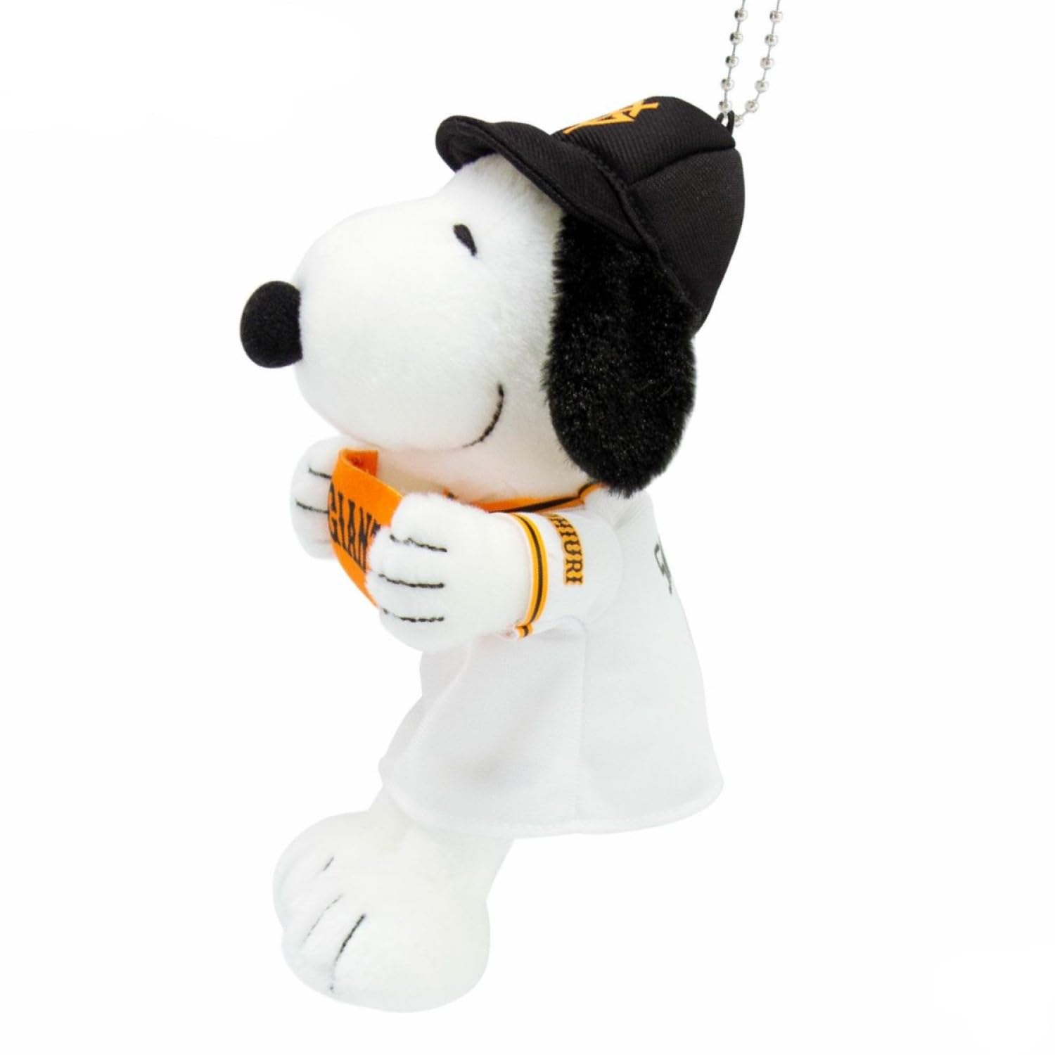 チームのユニフォームを着てロゴ入りタオルを大きく掲げた「応援スタイル」のスヌーピーと一緒に、野球観戦をお楽しみください