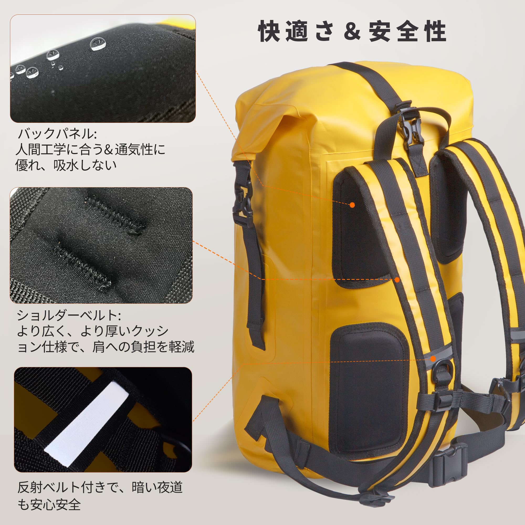 [Origem] ドライバッグ 防水バッグ 35L/55L/85L 大容量 完全防水 リュック 新型素材 折りたたみ式 防水 防塵 3色 登山 旅行 ハイキング アウトドア(イエロー55L)