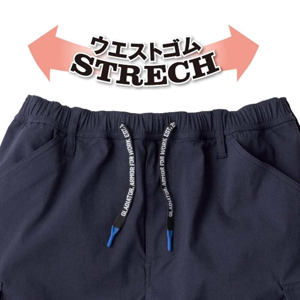 【特価セール】[グラディエーター] カジュアルパンツ 冷感ストレッチライトショートカーゴ 超ストレッチ素材 ウエストゴム