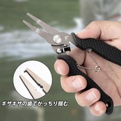 【使いやすい】プライヤの先端部分にギザギザの歯が付いています。針をしっかり掴んで取り外すことができます。さらに先端が長くので、ケガを防ぎながらフックを外せます。