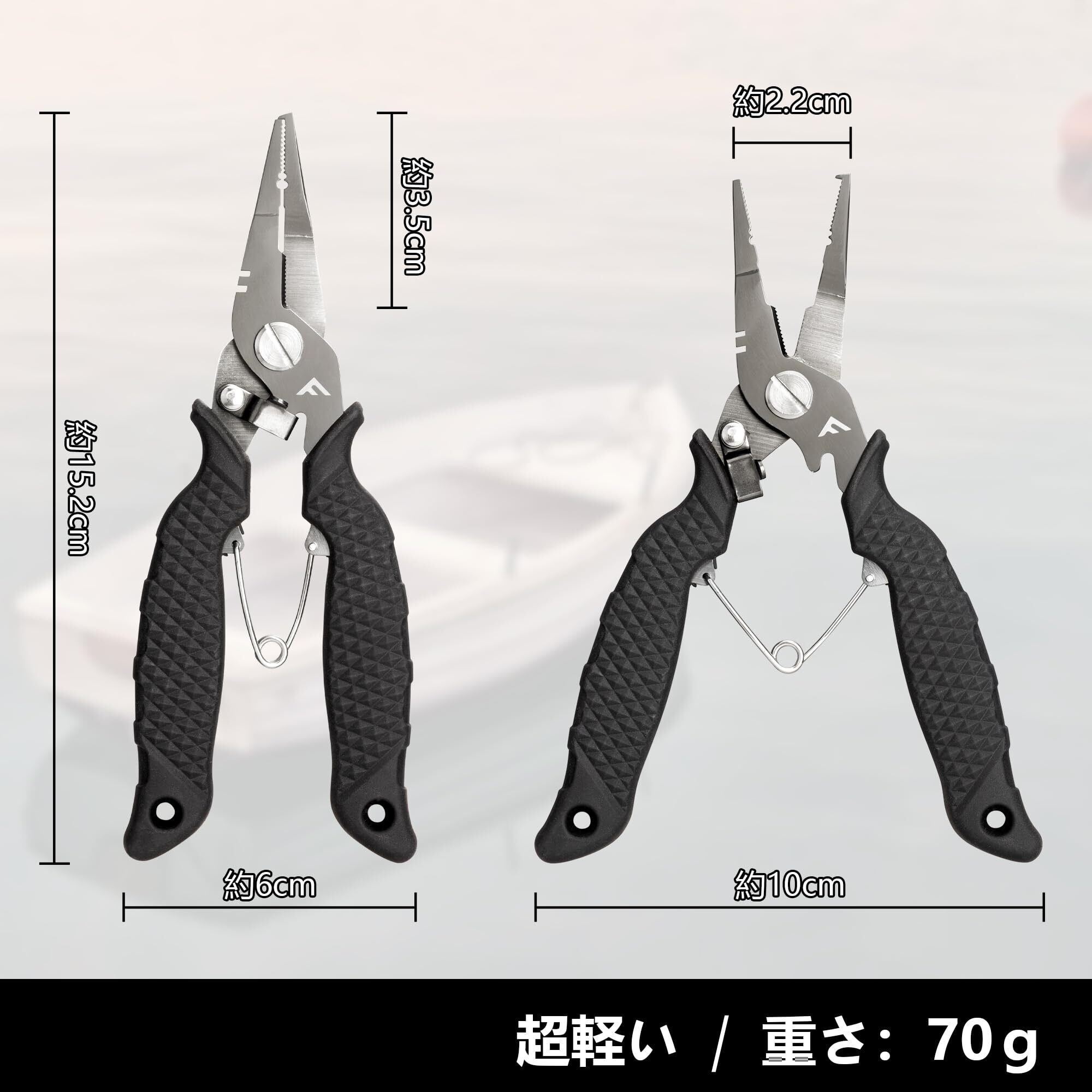 【多機能】スプリットリングオープナーとラインカッター、フック調整など機能が付いています。(リングサイズ#0~#3に対応可能)釣りに行くと多機能なプライヤーがあれば荷物がグッと減らせることができます。