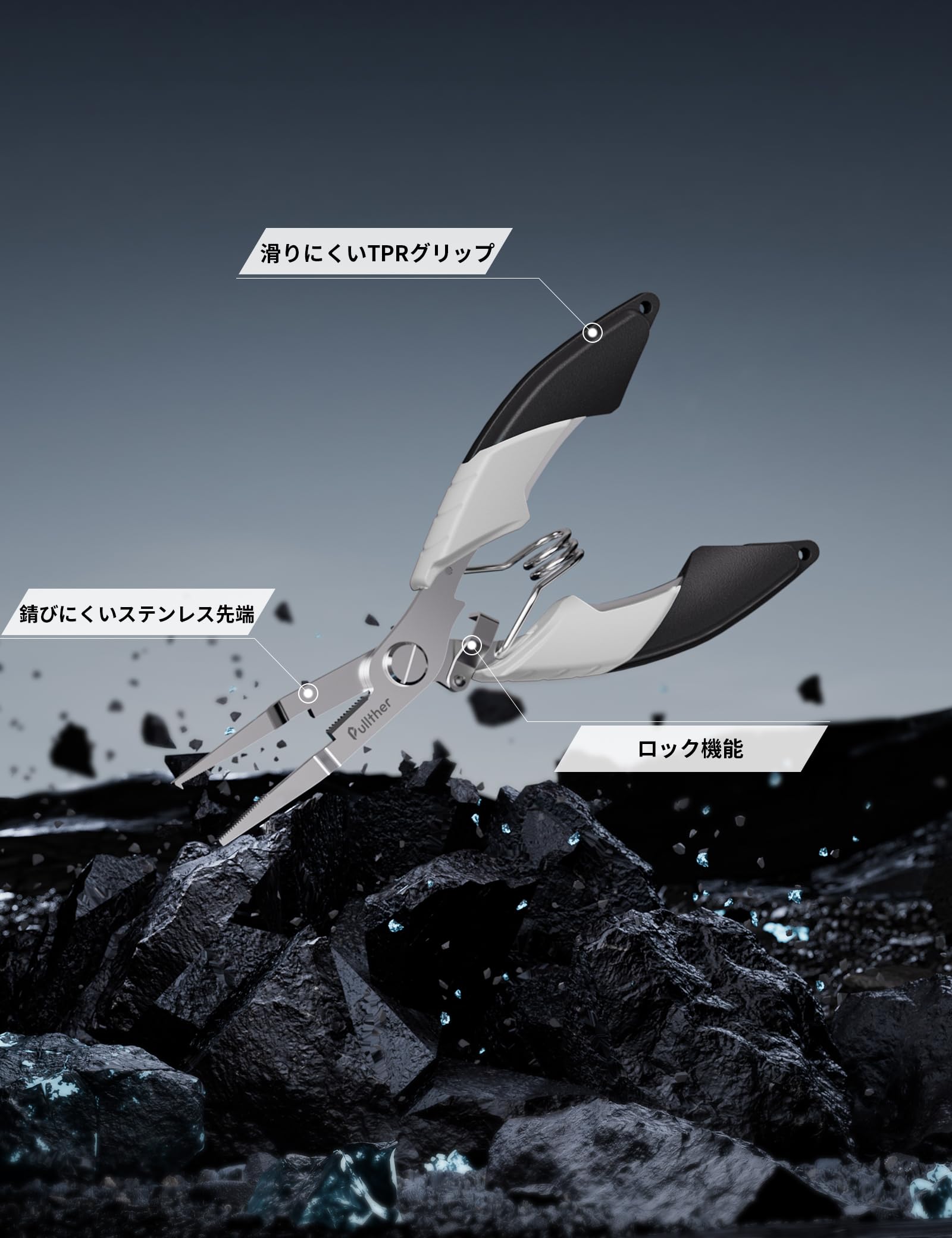 Pullther フィッシングプライヤー 釣り道具 釣り プライヤー 多機能 釣具 滑り止め 針外し PEライン切れる 軽量 尻手ロープ付き