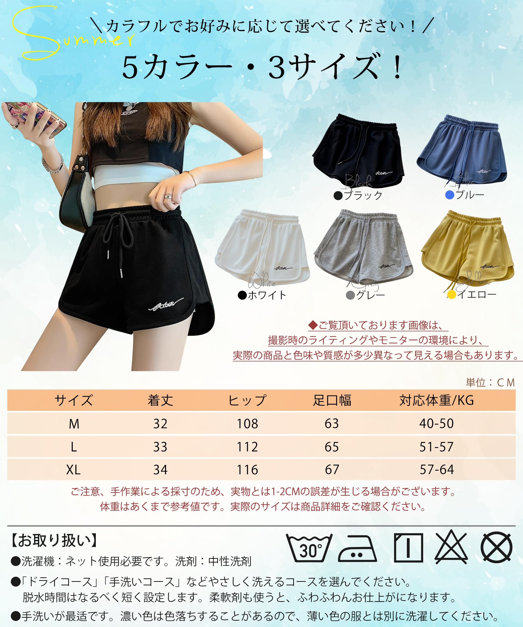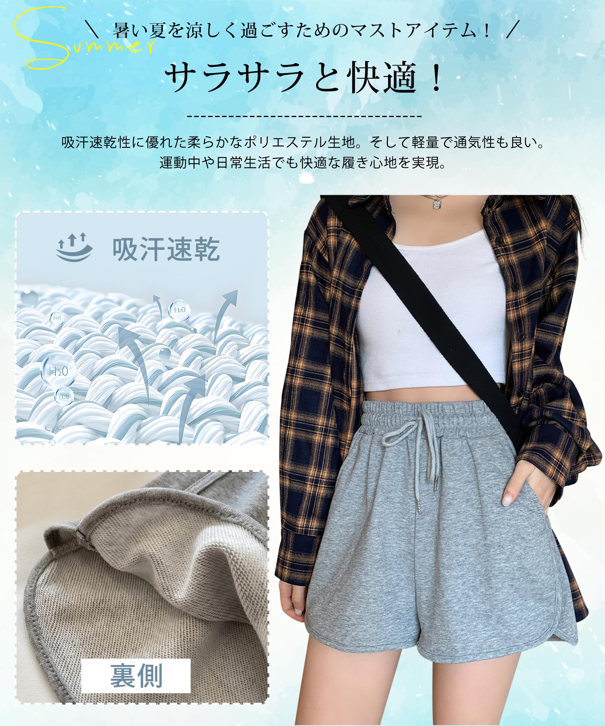 お客様の声より、商品のサイズが小さめですので、ゆったりとした着心地をお求めのお客様には、ワンサイズ大きめのご購入をおすすめいたします。【吸汗速乾・楽に着用】柔らかいポリエステル生地を使用したレディースショートパンツは、吸汗速乾性に優れて汗をかいてもすぐに乾きます。軽量で通気性も良いです。暑い季節でも涼しさをキープします。運動中や日常生活でも快適にご利用いただけるショートパンツです。
