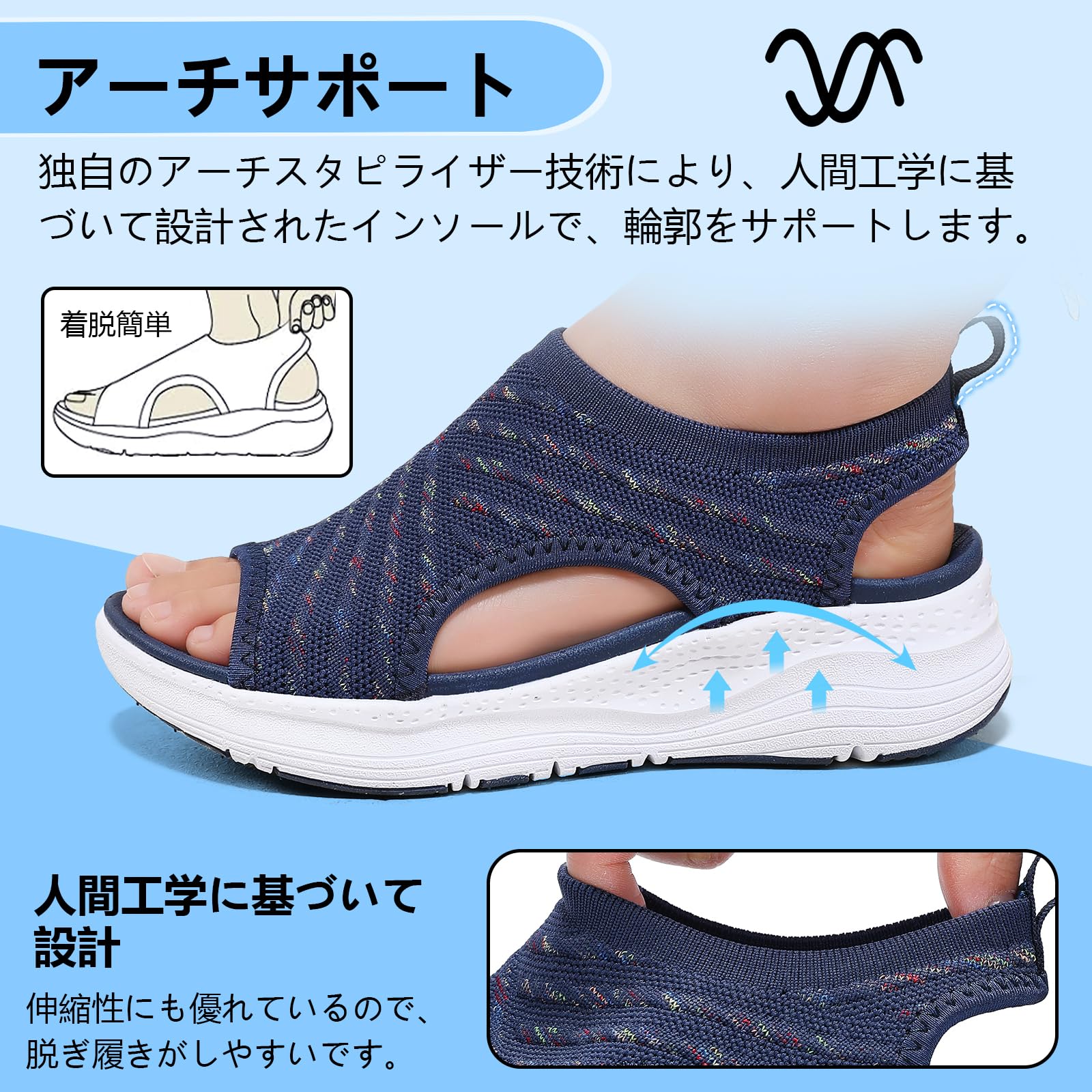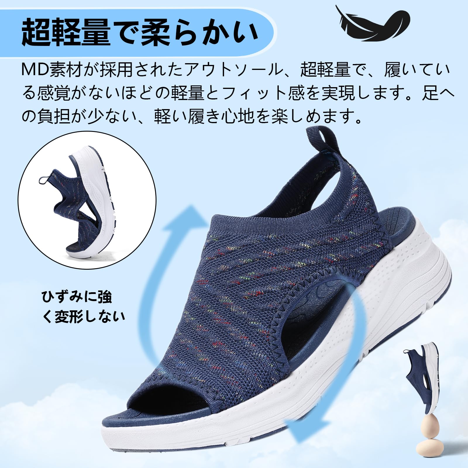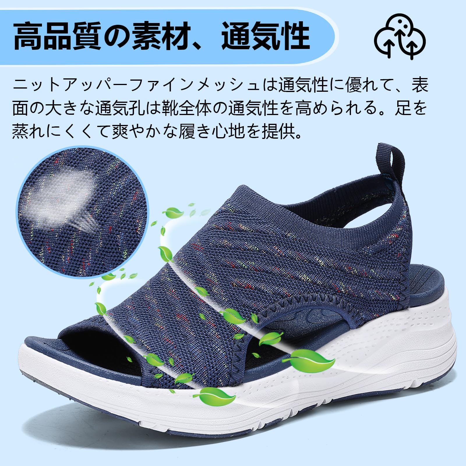 【在庫セール】[ziitop] 厚底 スポーツサンダル レディース 歩きやすい ナースサンダル 美脚 スニーカー スリッポン ウォーキング オフィス 軽い ニット 疲れない 滑り止め おしゃれ 人気 御洒落