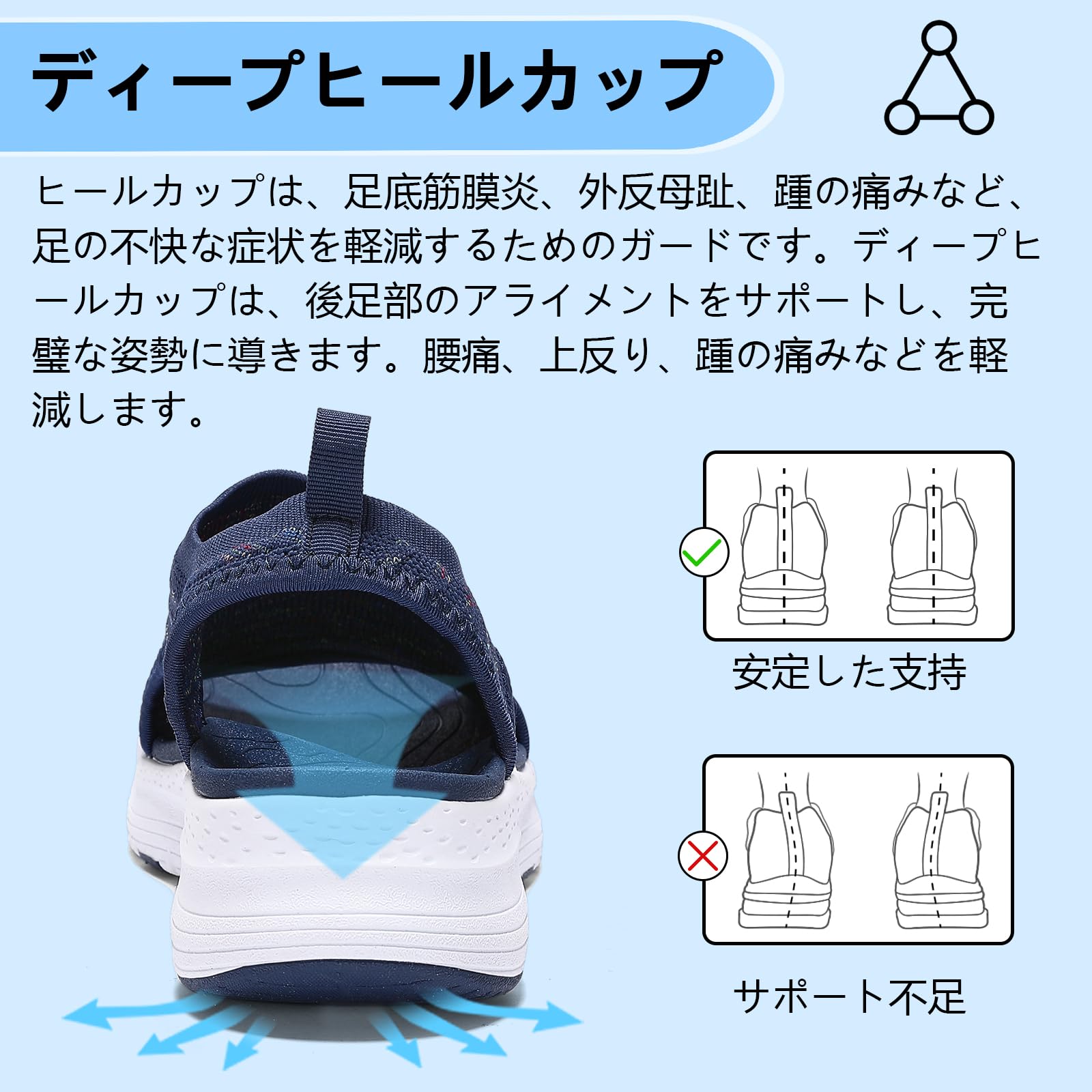 【通気性】ニットアッパーファインメッシュは通気性に優れて、表面の大きな通気孔は靴全体の通気性を高められる。足を蒸れにくくて爽やかな履き心地を提供。