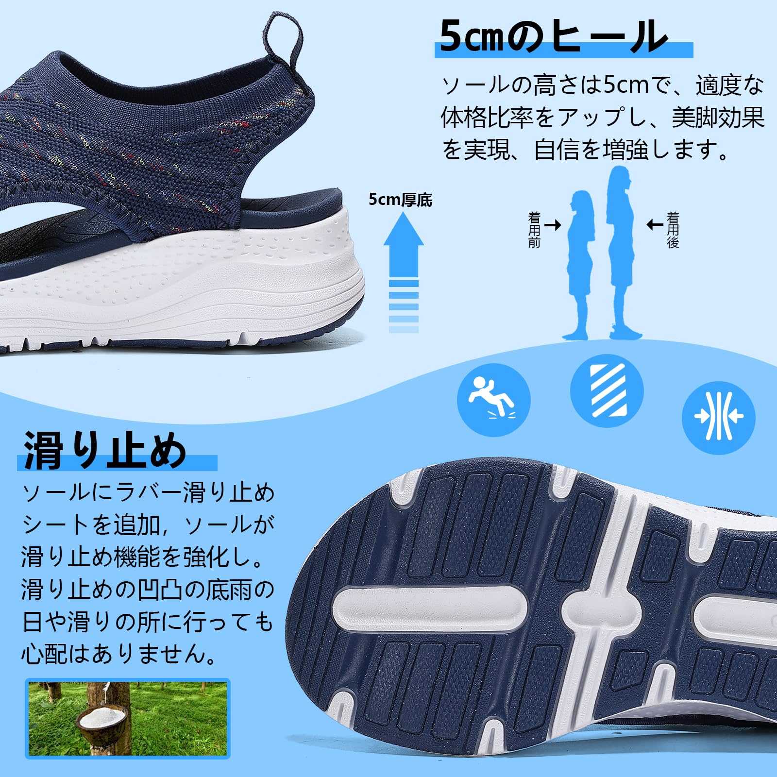 [ziitop] 厚底 スポーツサンダル レディース 歩きやすい ナースサンダル 美脚 スニーカー スリッポン ウォーキング オフィス 軽い ニット 疲れない 滑り止め おしゃれ 人気 御洒落